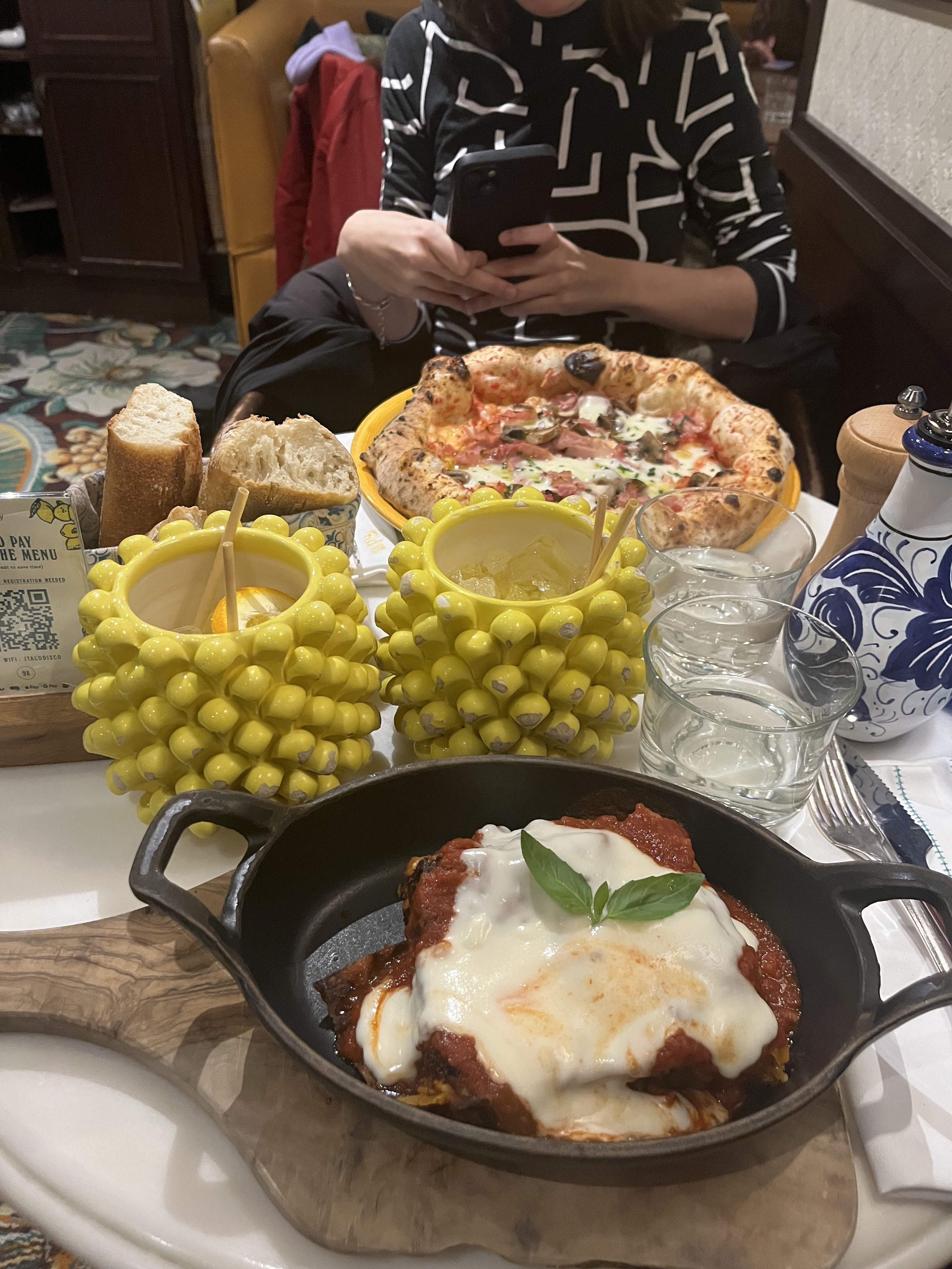 Très mitigée. L’ambiance est top, l’on ressent parfaitement l’Italie, que ce soit avec les produits, les odeurs ou même les accents des serveurs : l’immersion est au rendez-vous. Au niveau de l’attente, comme dans tout restaurant qui ne fait pas du surgelé, il y en a un peu, certes, (disons une trentaines de mn) mais les boissons arrivent très rapidement et dans de très beaux verres (voir photo). La cuisine elle, m’a franchement déçue, la cuisson était top mais ça n’était pas assez relevé en terme de saveurs concernant les pâtes. Mes amies ont pris des pizzas qu’elles ont trouvé juste « bonnes », mais vraiment sans plus. Ce qui nous a quand même surpris au vue de l’engouement sur les réseaux sociaux, de la queue qu’il y a toujours devant (penser vraiment à réserver !!!). En résumé : beau (et grand) restau dans lequel règne une belle ambiance (on s’entend parler) , qui est sûrement recommandable au vue de sa réputation qui ne chute pas, (c’est qu’il y a une raison) mais pas impressionnées… Nous tenterons de nouveau l’expérience histoire de garder le bon soupçon ✨