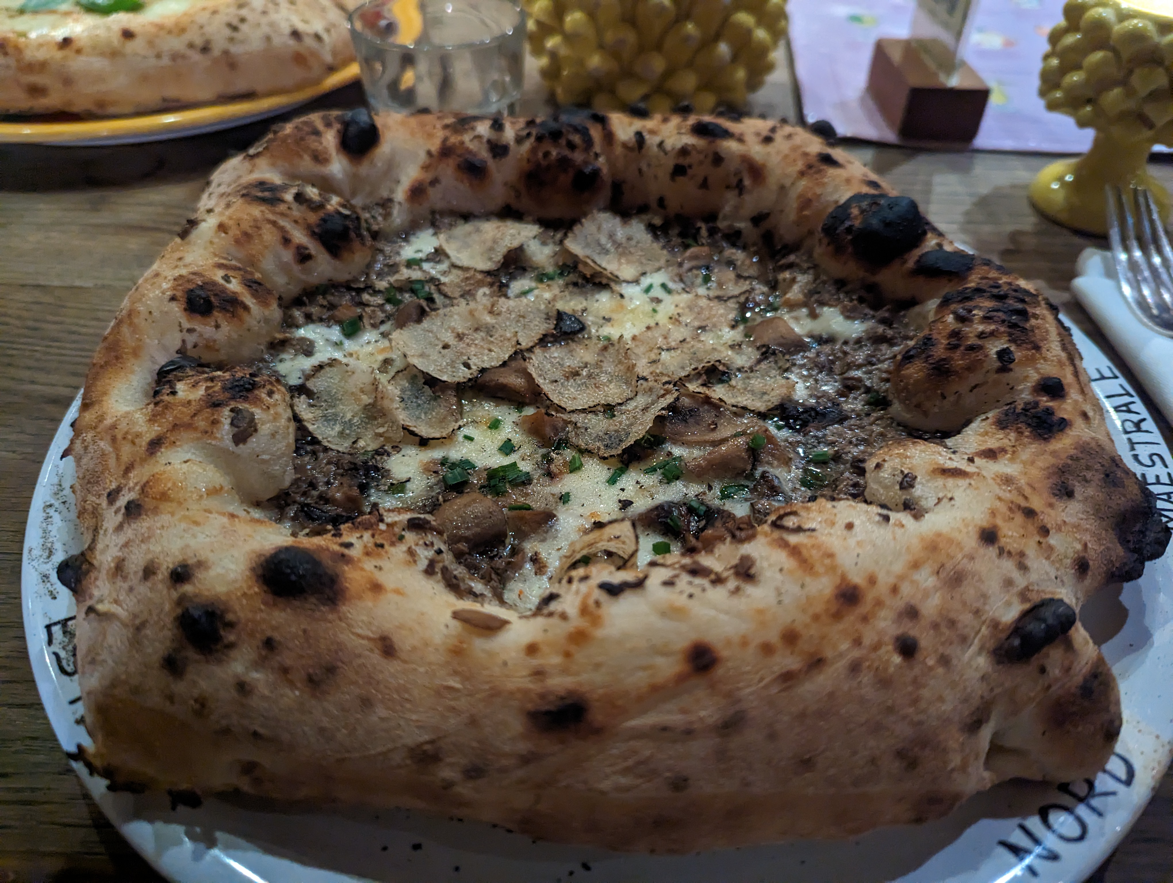 Petit dîner en amoureux dans une ambiance exceptionnelle. Un environnement et une décoration fait pour se sentir comme à la maison. Un accueil chaleureux avec une équipe entièrement italienne qui ne vous parlera qu'en italien. Aucune attente, nous avions réservé et avons même pu être pris en avance donc parfait ! Nous avons choisis de tester les fameuses pizzas : la quatres fromages et la truffe. Incroyable, la pizza à la truffe est vraiment raffinée avec des prix raisonables. Nous y retournerons c'est certain. Pensez à réserver car à la dernière minute tout est complet !