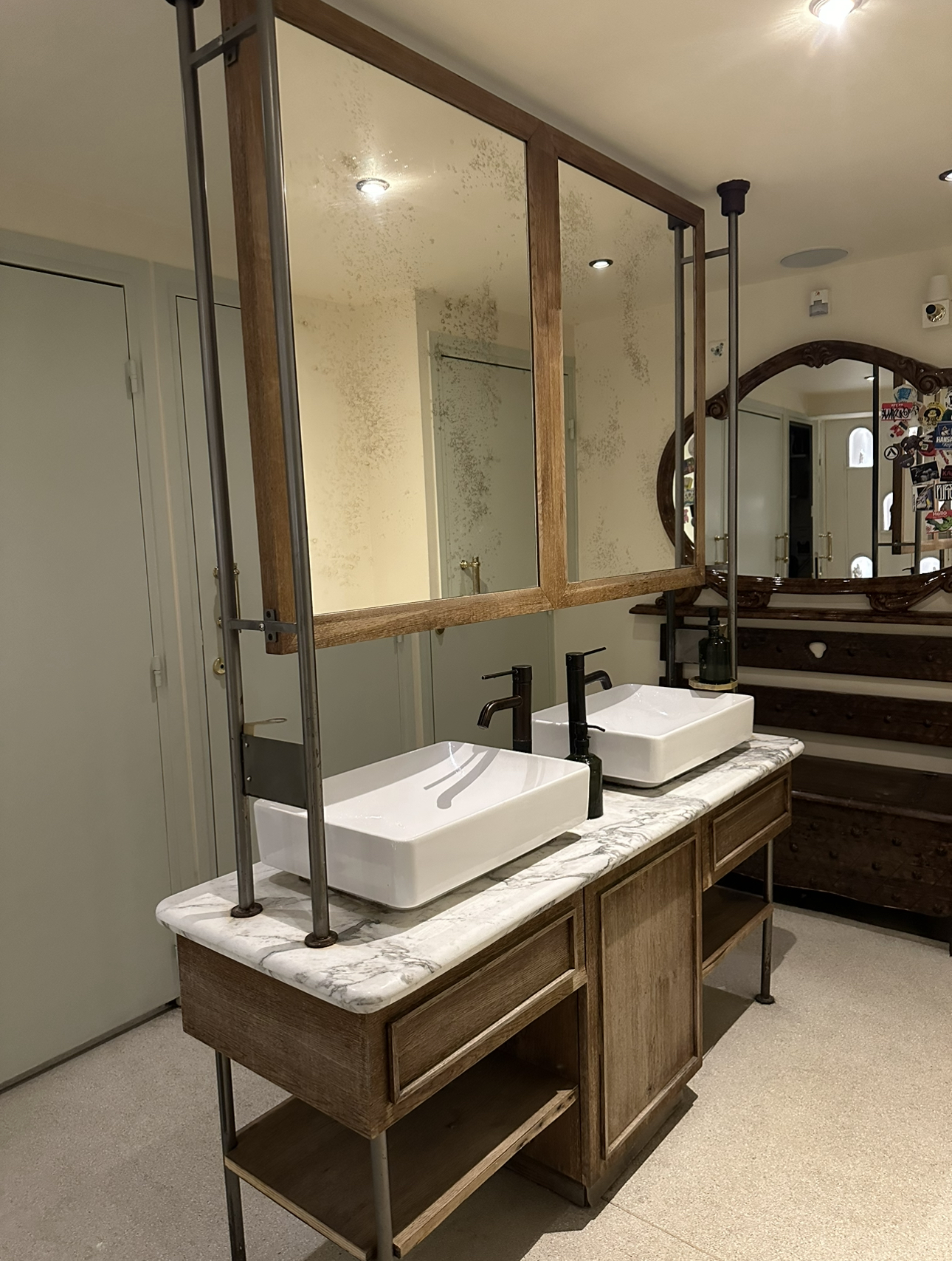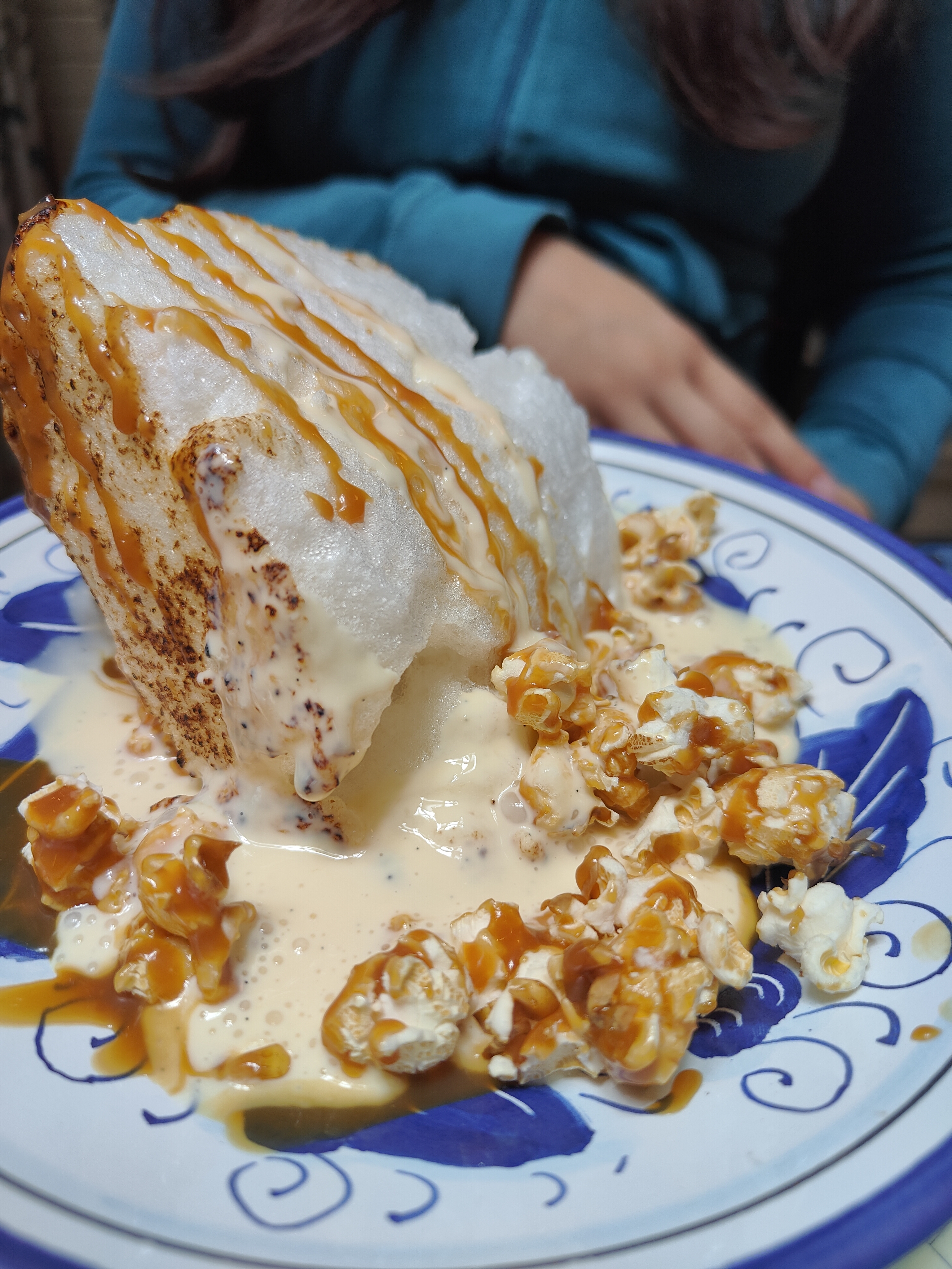 - très bonnes pâtes à la truffe,⭐⭐⭐⭐ - L'île flottante ⭐, elle ne flotte pas, manque une crème, elle est entourée de pop-corn nappés de caramel, trop sucré. - la table à côté de la bibliothèque est mal placée, trop de passage, pas assez d'espace.⭐ - belle décoration ⭐⭐⭐