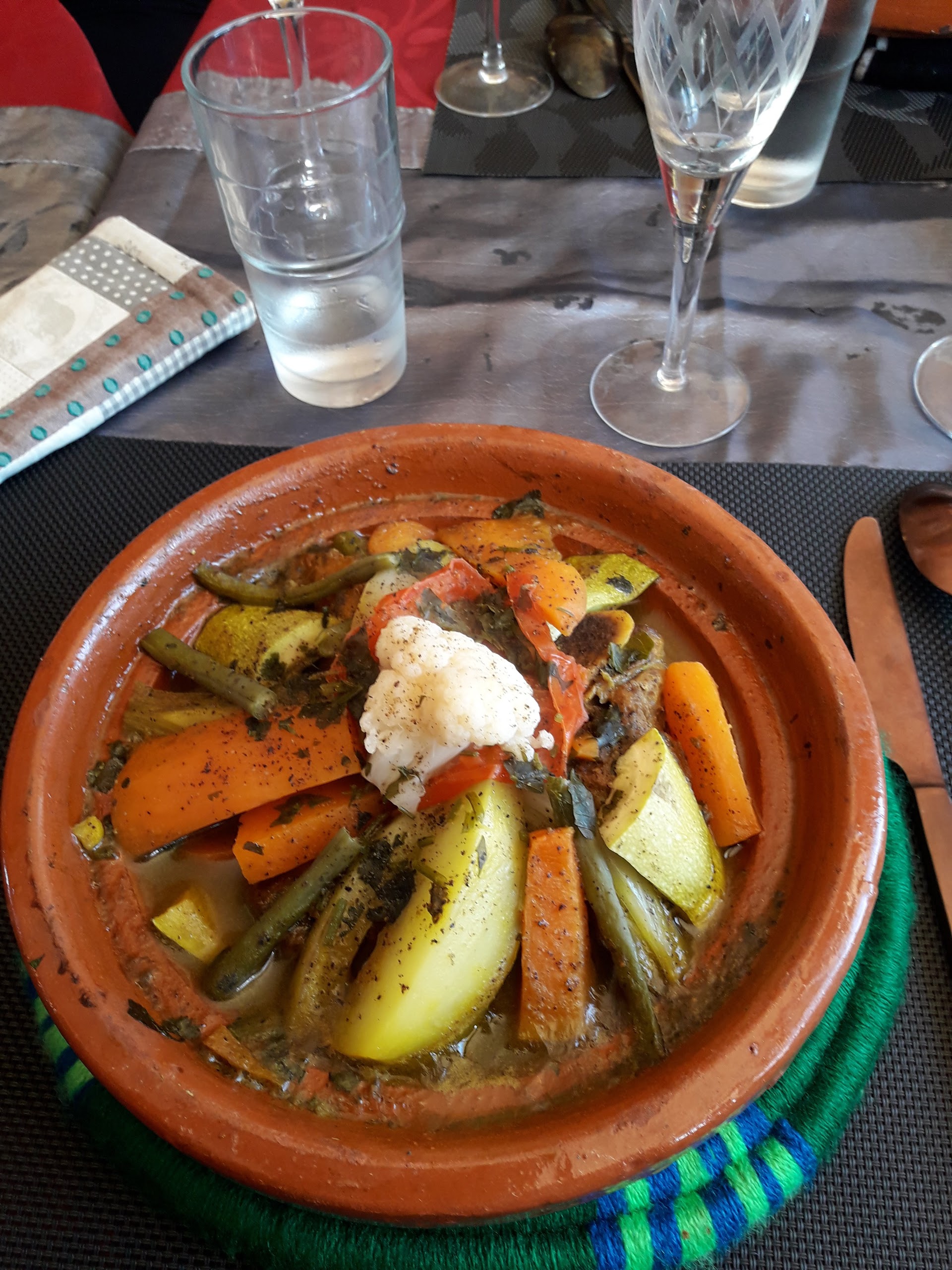 Les délices de l'Atlas sont venus jusqu'à nous, les couleurs les senteurs et le goût des épices, les légumes, la viande, les sauces, c'est une explosion de saveurs. Accueil, gentillesse et thé à la menthe avec de savoureux sorbets complètent ce voyage. Et réservez !