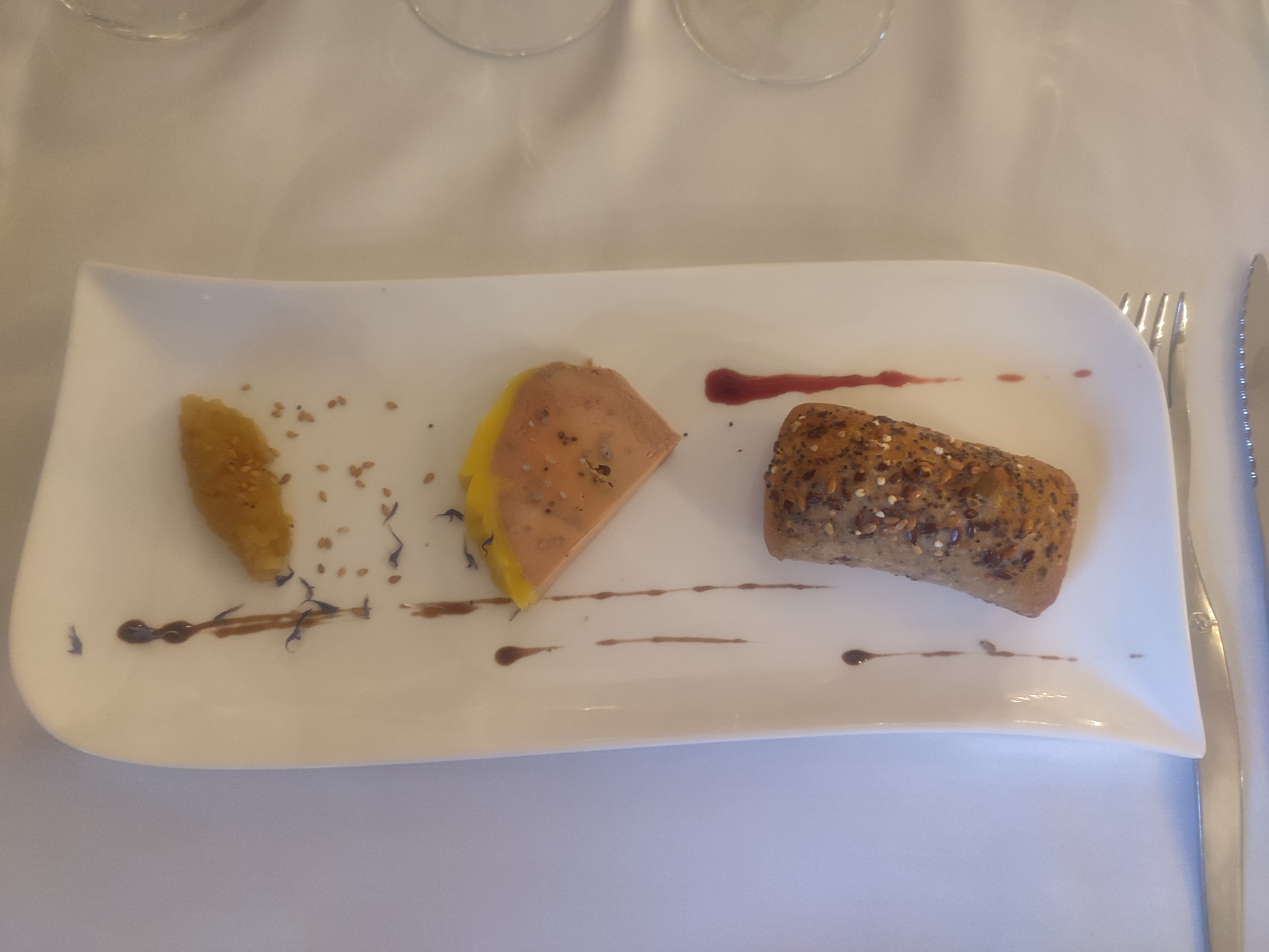 Menu à 34e: choix très limité, belle présentation l' entrée foie gras est de qualité mais très chiche sur la quantité, le veau bien préparé mais sauce en quantité insuffisante. Pas de légume, quant au dessert je pense qu'il n'est pas maison. Le pain congelé, dommage pour une table qui se dit de qualité. Je pense que le menu à 18e est très bien. Même dessert que celui à 34e. Des progrès à envisager. J'essaierai le menu à 18e.