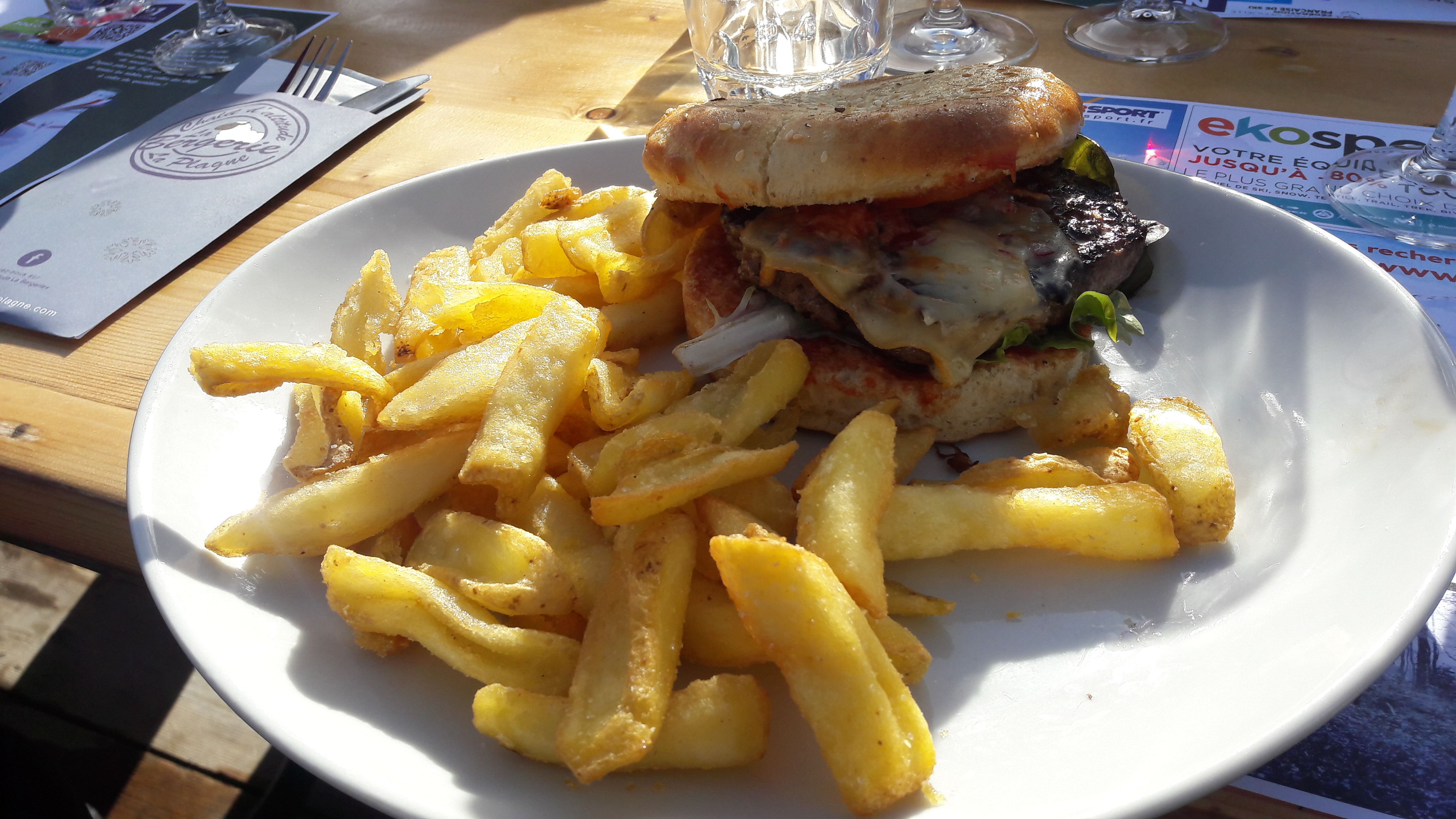 Délicieux cheeseburgers avec un pain moelleux. Service aimable et efficace. Magnifique endroit au milieu des pistes. Grande terrasse ensoleillée. Intérieur chaleureux.