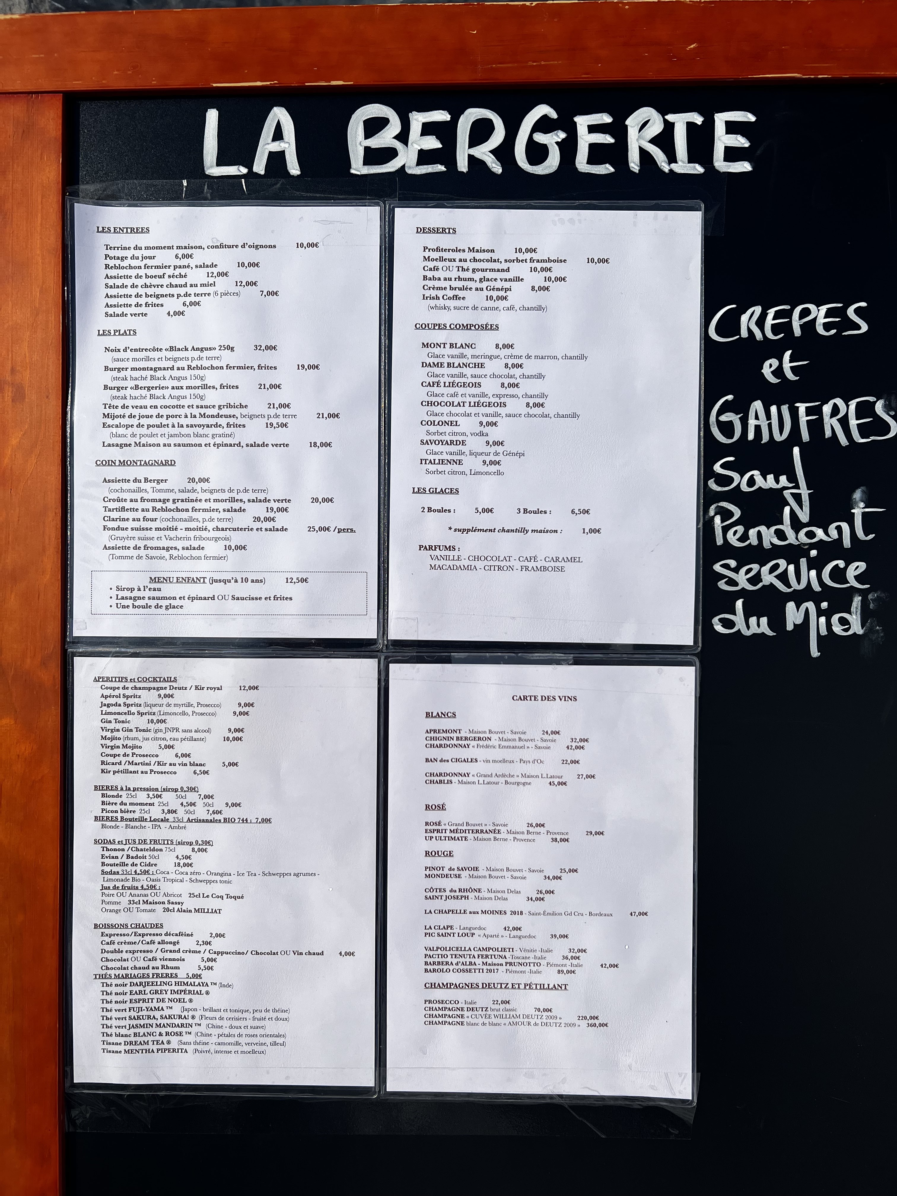 Lieu très accueillant, des serveuses souriantes et agréable. L'assiette du berger est au top, la tarte aux myrtilles MIAM et les profiteroles maison sont bon!😉