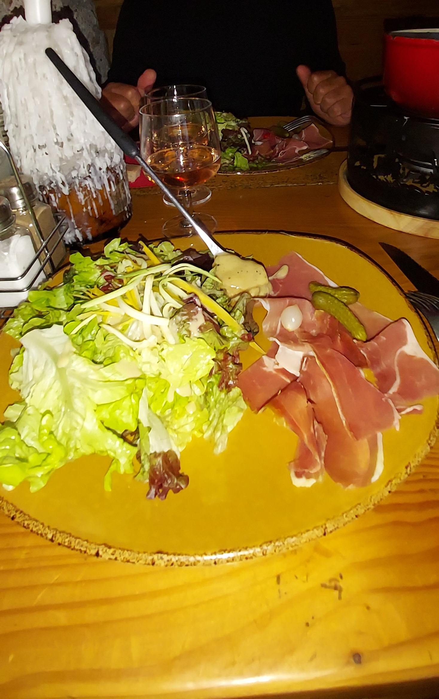 Fondue et vin blanc parfaits Dommage que les personnes seules soient reléguées en extérieur Heureusement que j'avais des vêtements d'hiver