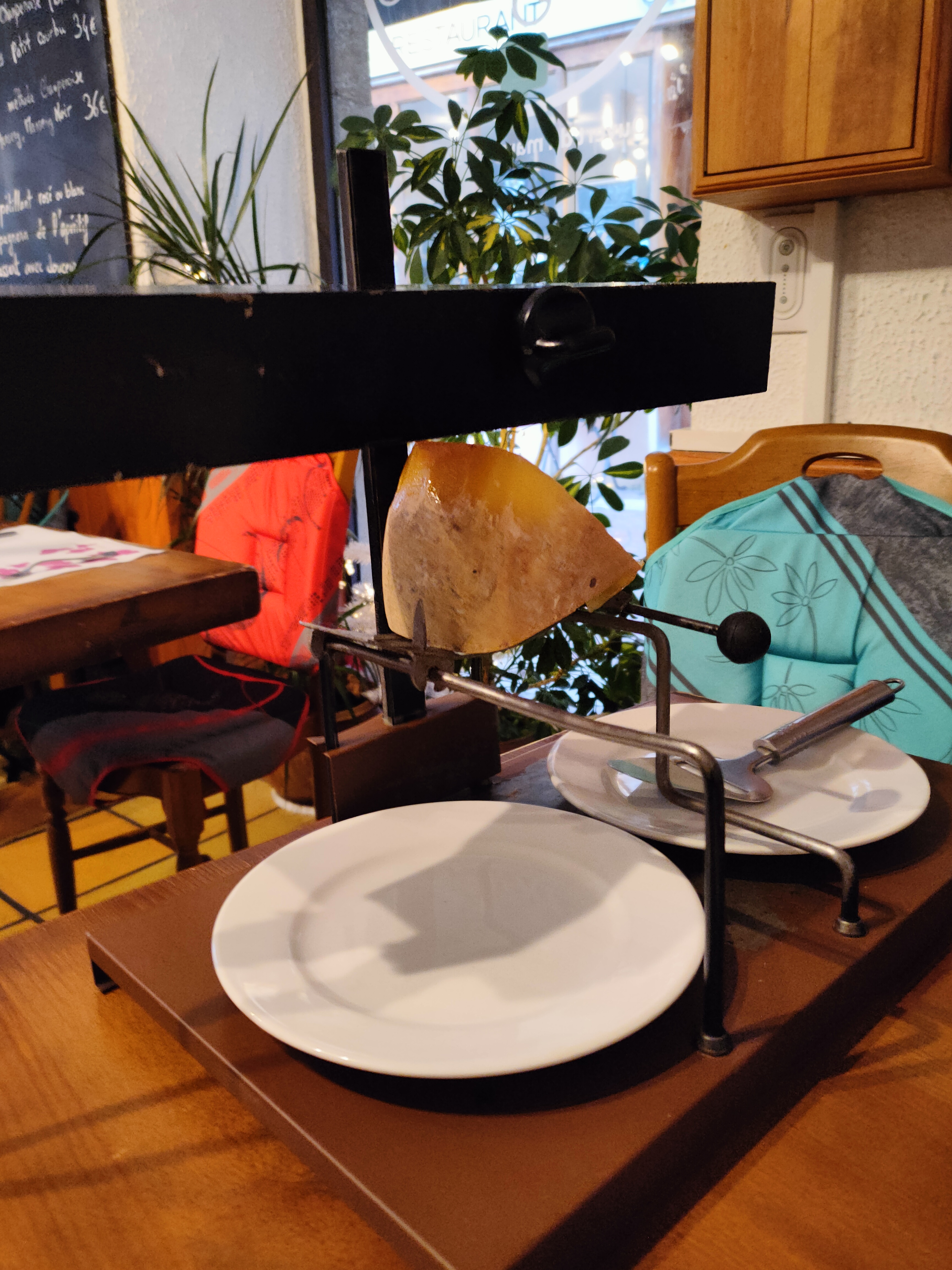 Raclette pour 4 avec une seule machine 20 minutes pour avoir une fournée de fromage chacun notre tour. Fromage fade sans intérêt petite quantité. Bonne charcuterie et bonne assiette. Je ne recommande pas.