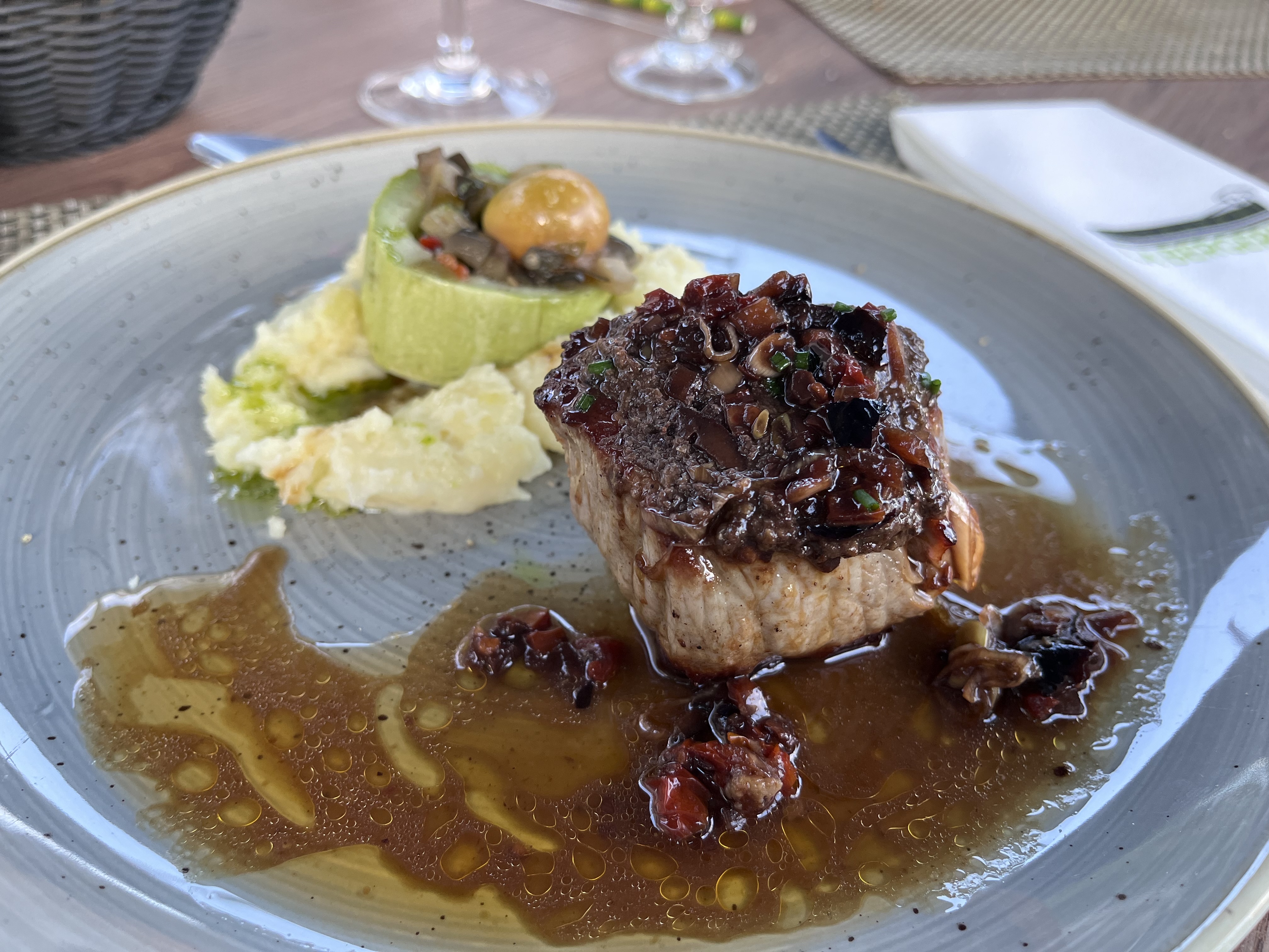 Nous y avons dine hier soir mon mari et moi c etait delicieux .Le saint pierre a la mauricienne un regal ;le pave de veau pique au choprizo de meme , le dessert pavlova une merveille de legerete...bref une soiree agreable dans un endroit charmant accueillis par une equipe sympathique et aux petits soins pour un diner succulent bravo au chef !