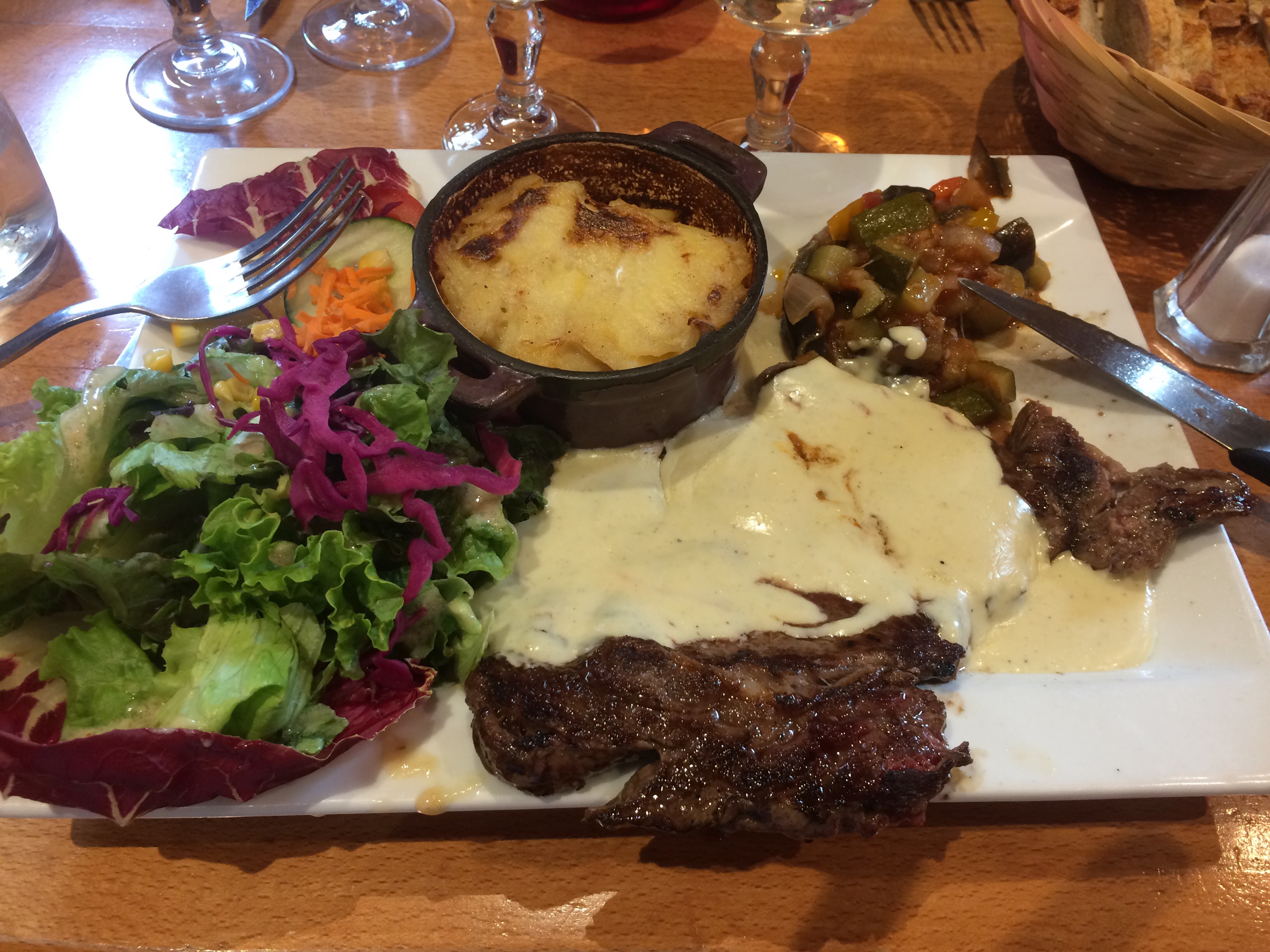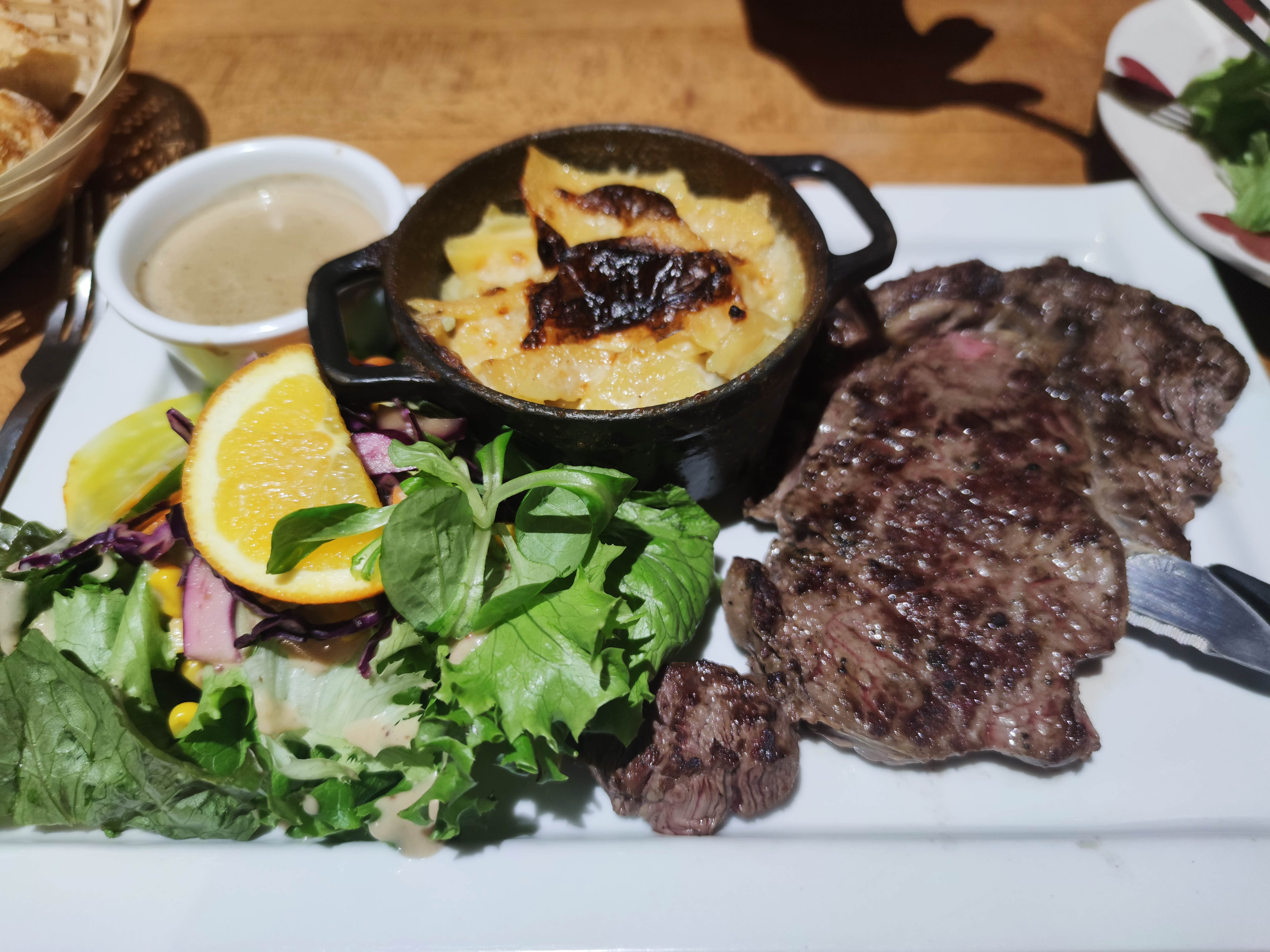 J'ai pris une une entrecôte sauce au bleu du vercors, étant difficile sur la qualité de la viande je l'ai trouver excellente la sauce était onctueuse elle se marié très bien à la viande le gratin était aussi très bon, assaisonnement parfait avec ce plat je vous conseille un 1/4 de vin blanc jaquère. Bravo à l'équipe !!! 💪