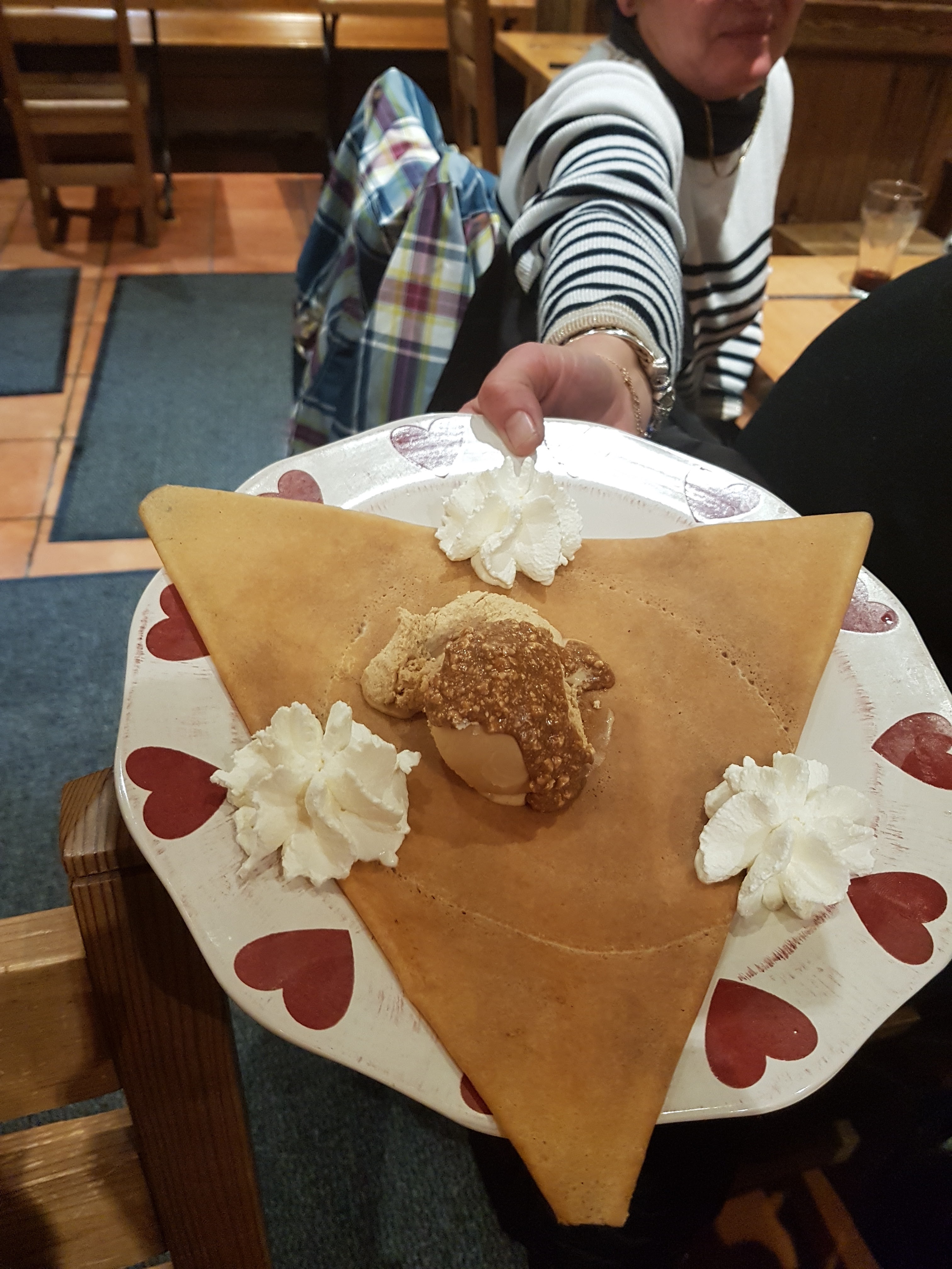 Nourriture excellente et personnel très sympathique. Nous avons eu la fondue qui était correcte mais la tartiflette était absolument fantastique ! Tout comme les crêpes ! Nous aurions aimé rester ici plus longtemps pour essayer davantage de leurs plats.