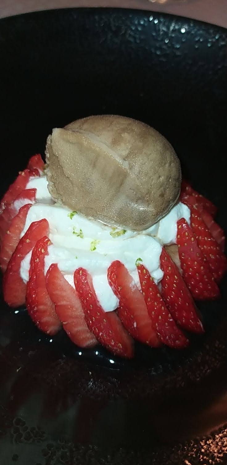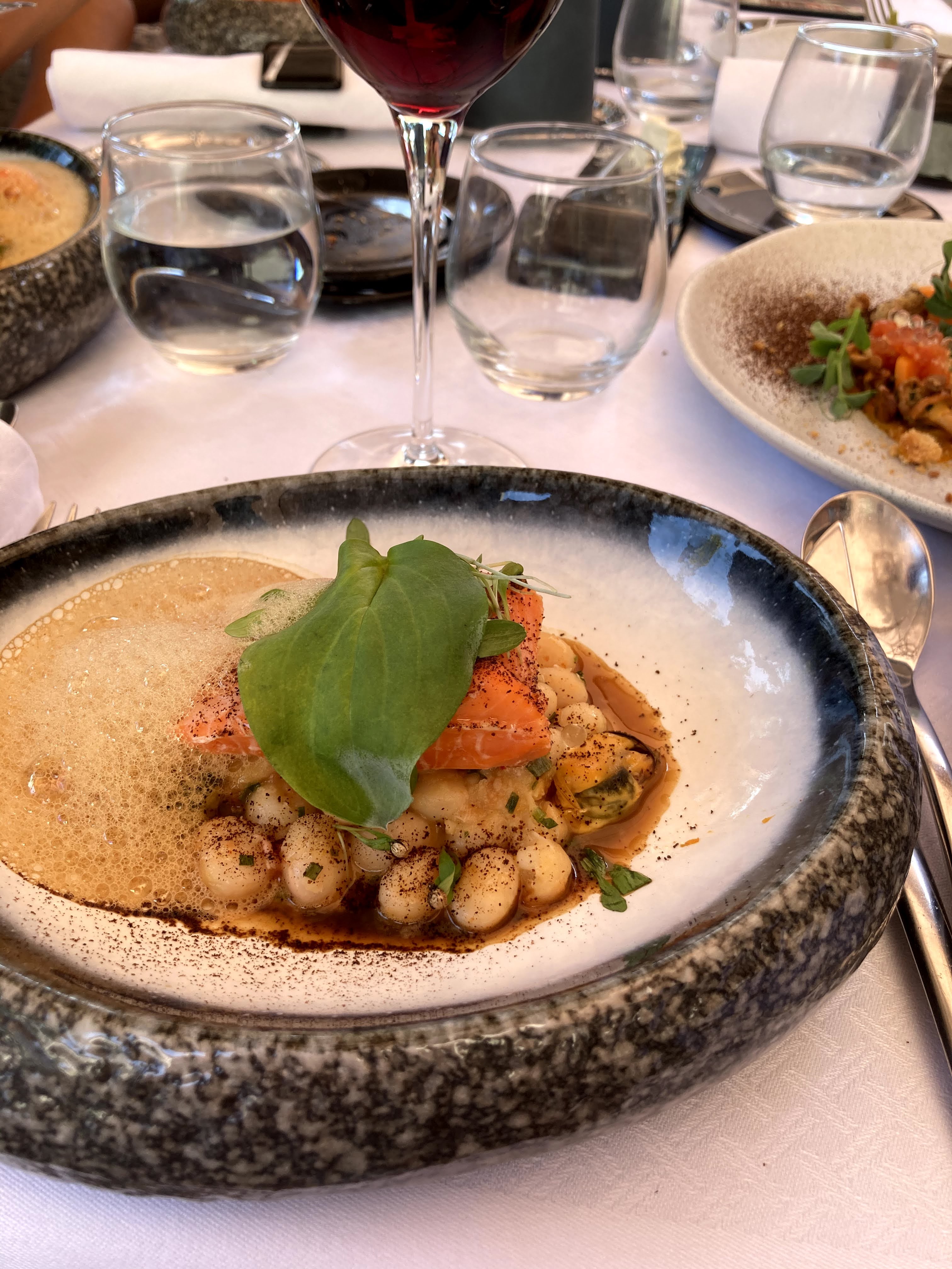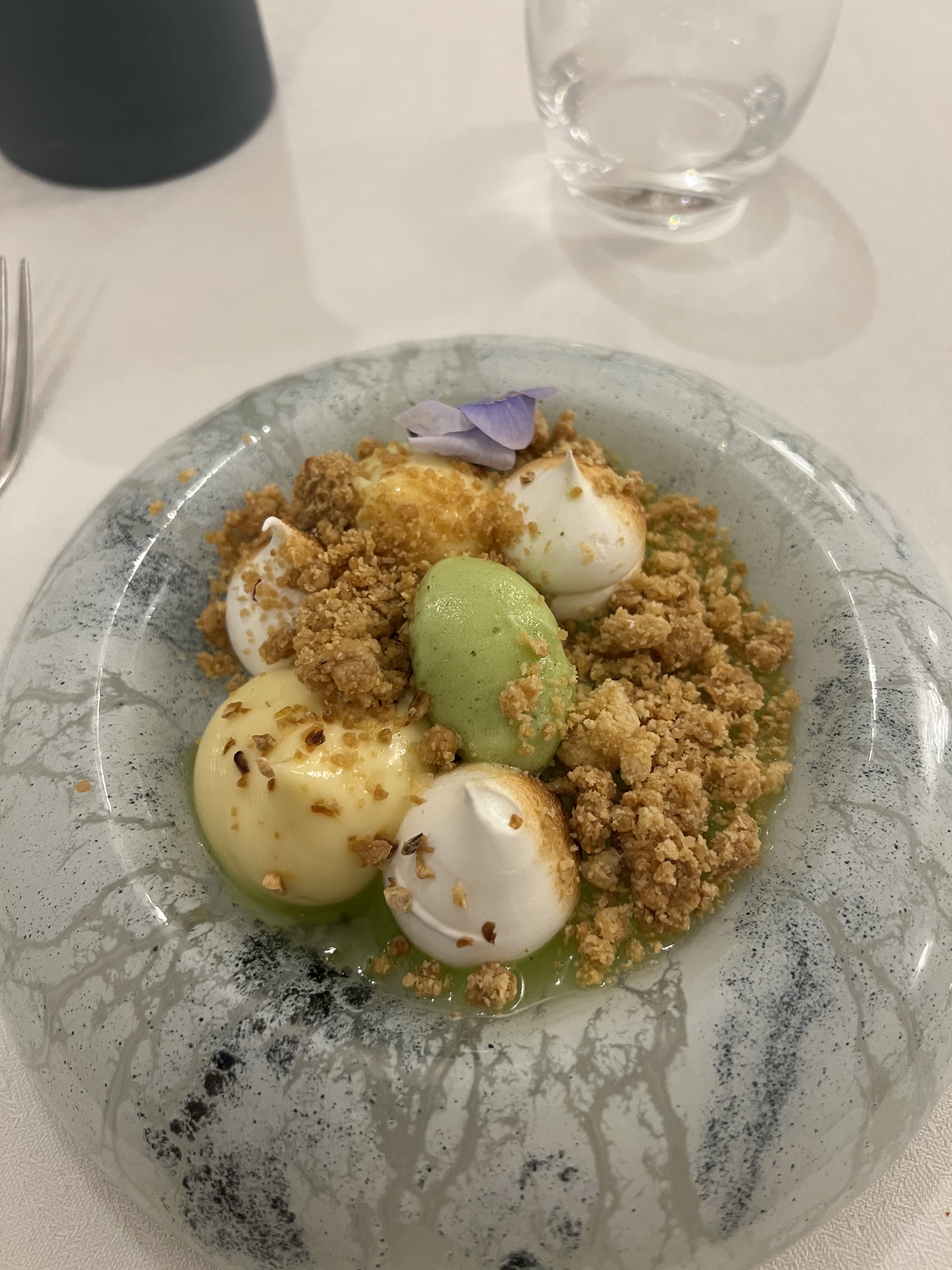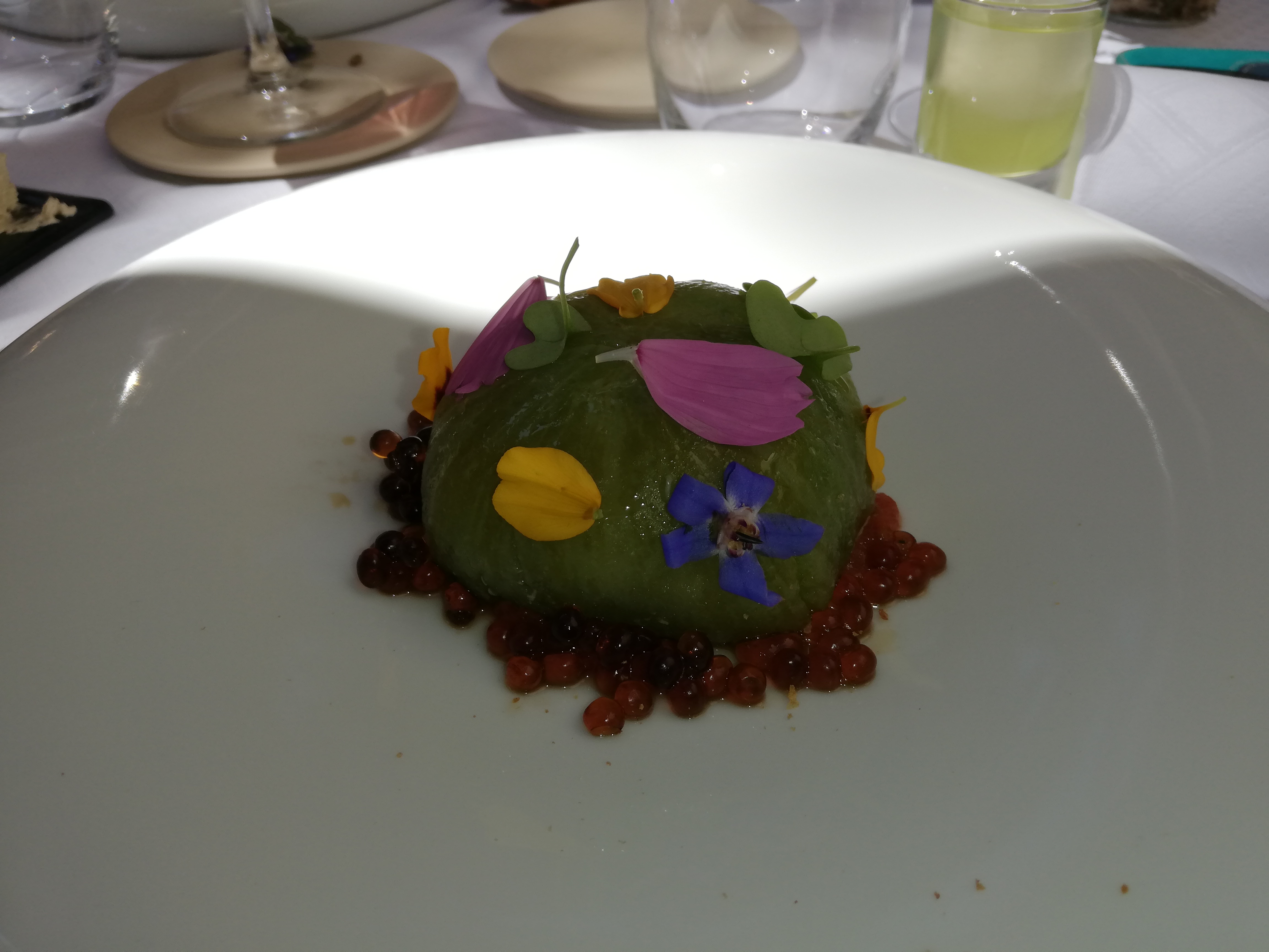 Une cuisine savoureuse et surtout audacieuse ! De très belles assiettes et de grosses prises de risques. Dressages millimétrés, explosion de couleurs et mélanges novateurs. Coup de cœur pour le maki de tourteau, avocat et kiwi. Belle surprise au moment du pré dessert « mystère » dans lequel se cachait un sorbet au curcuma… Délicatesse, fraîcheur et légèreté, un trompe l’œil qui joue parfaitement son rôle de transition entre le salé et le sucré ! Une adresse avec un énorme potentiel