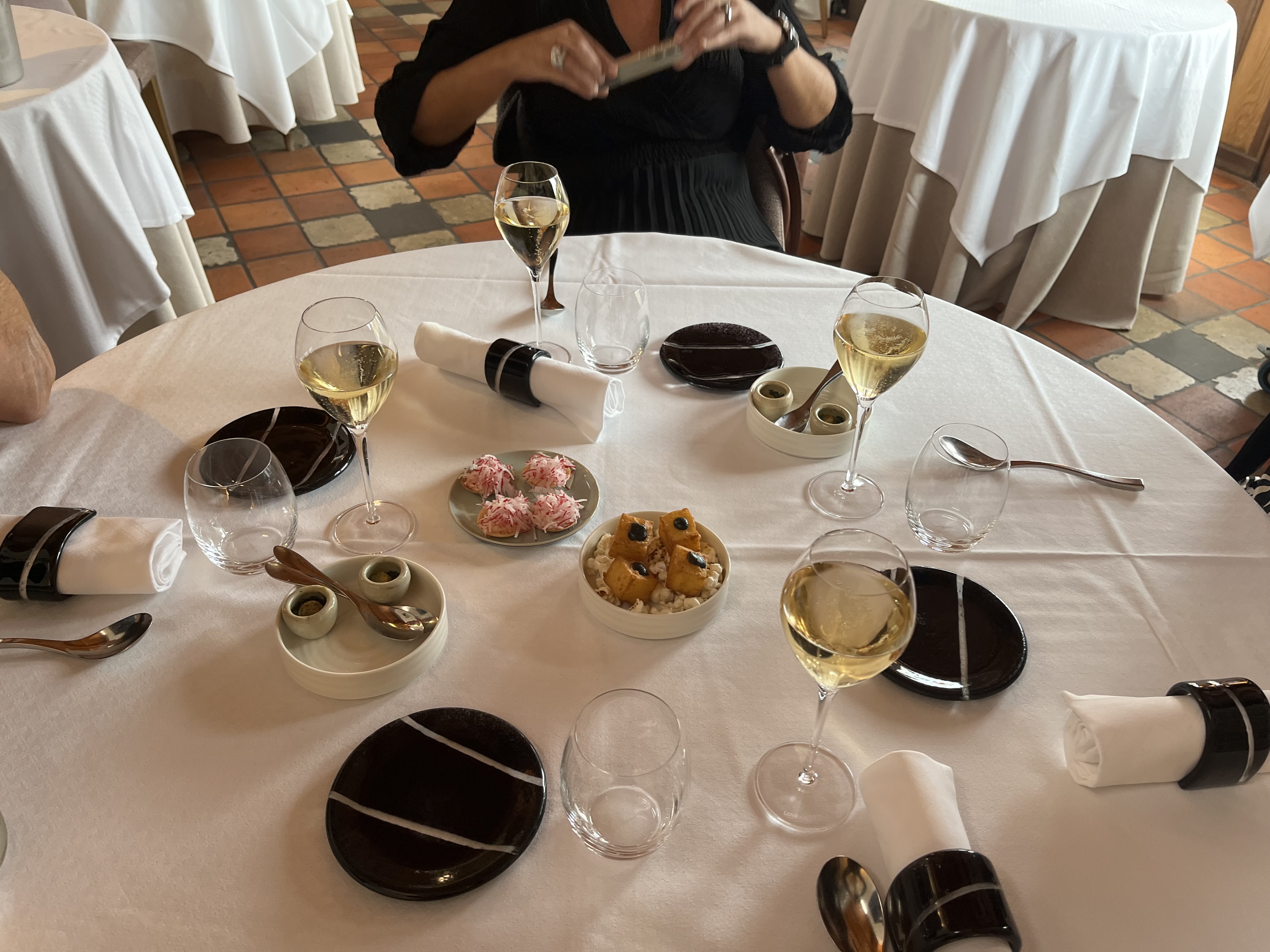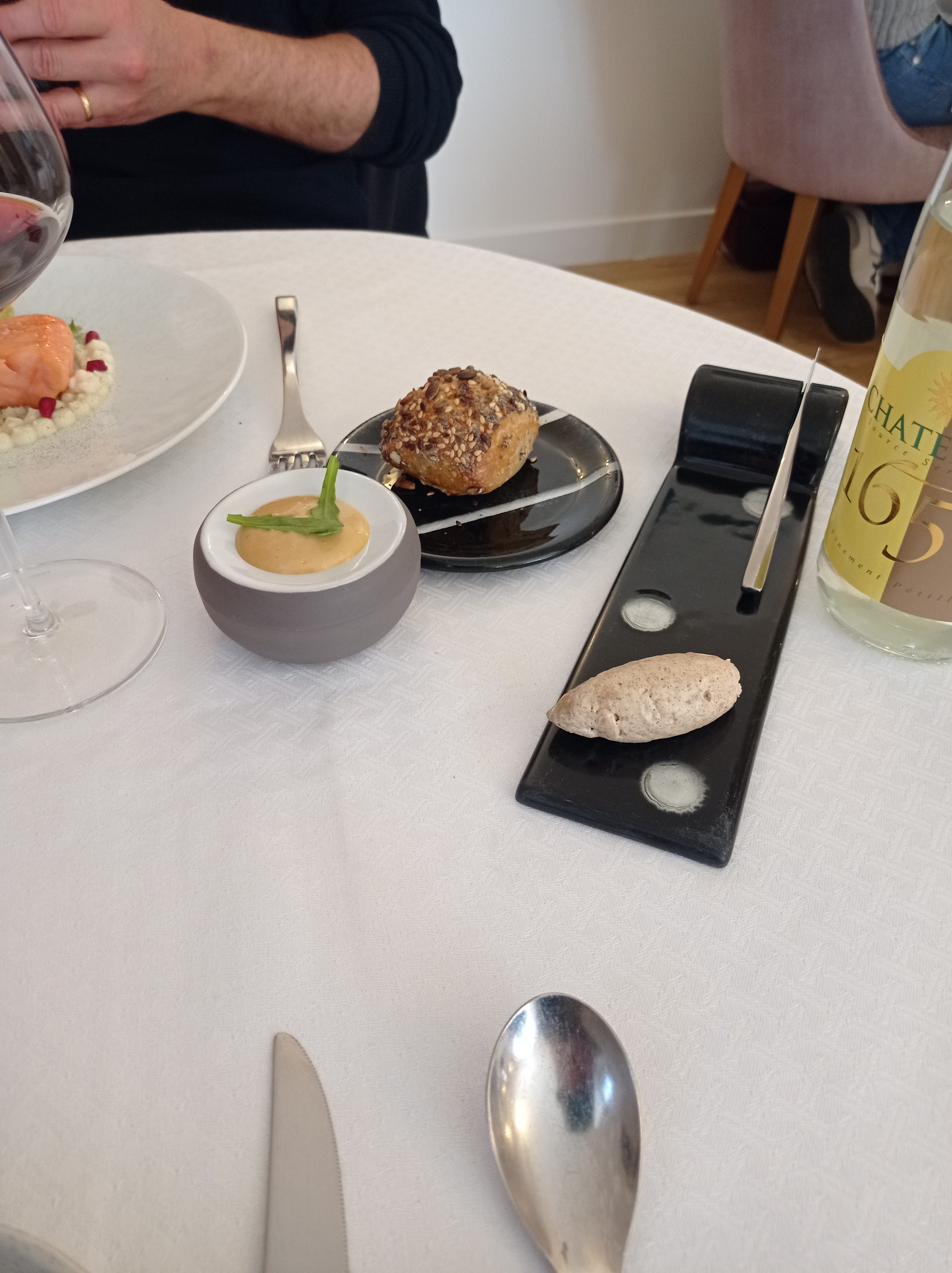 C’est un beau et bon restaurant gastronomique. Nous avons profité de l’extérieur pour le déjeuner. Ce fut un agréable moment. Nous y avons découvert des plats et des saveurs originales. Comme la feuille d’huître. Le pain fait maison est excellent. Une belle carte des vins.