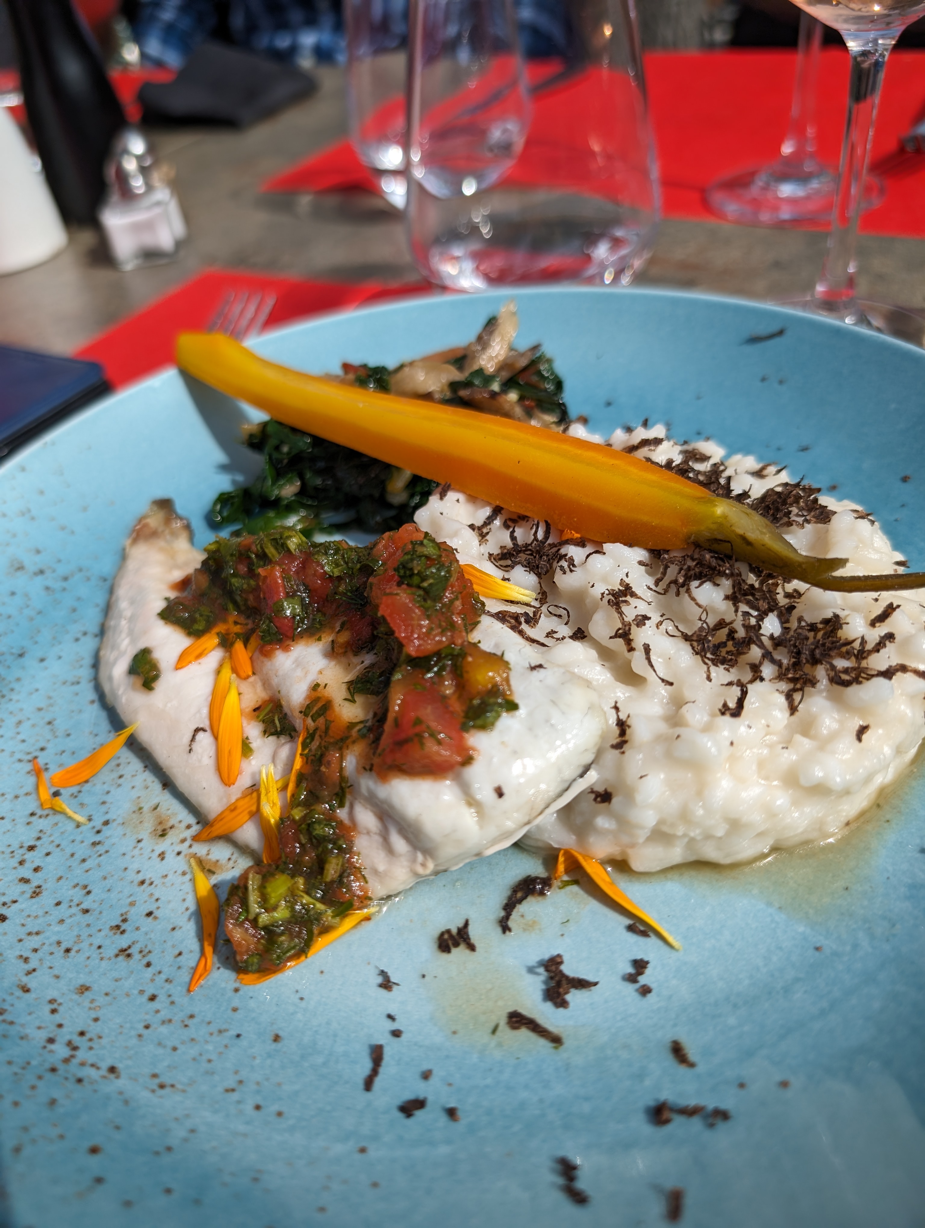 Une très bonne découverte . Lieu très agréable et magnifique. Service impeccable. Et plat à la hauteur . Suggestion des vins en adéquation avec le plat et nos gouts. Nous y reviendrons mis d'un prochain séjour