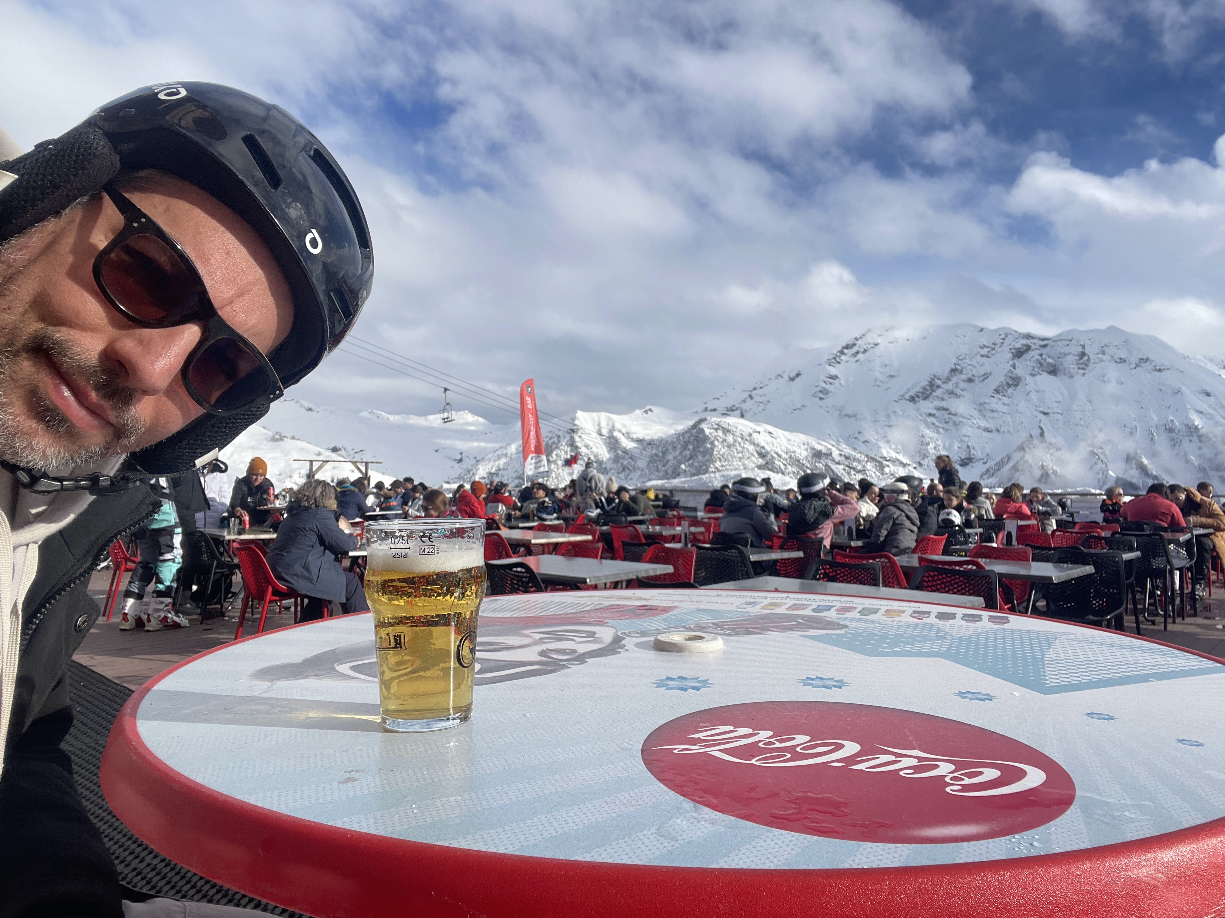 Une petite pause bien agréable au milieu des pistes ! Et un génépi coffee pour aider aux virages !