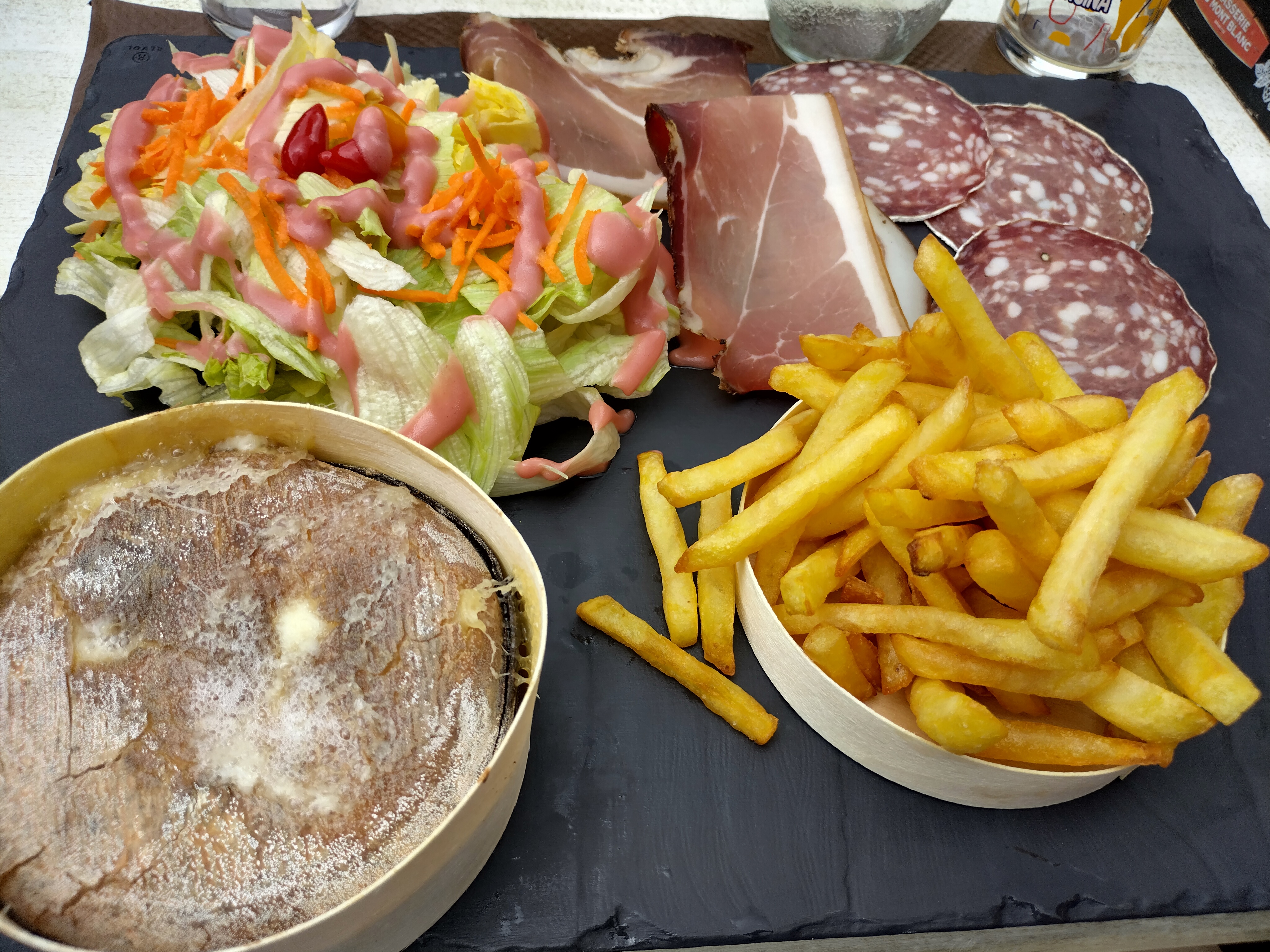 Joli cadre belle terrasse sur la montagne. On s'attend à une cuisine généreuse sur le fromage mais ce n'était pas le cas du tout. Il faut chercher le beaufort dans le burger. Tartiflette très sèche, peu de fromage, pommes de terre mal épluchées. Fondant au chocolat pas chaud, deux bouchées et c'est fini. Bref, très cher mais cuisine radine.... Très déçus.