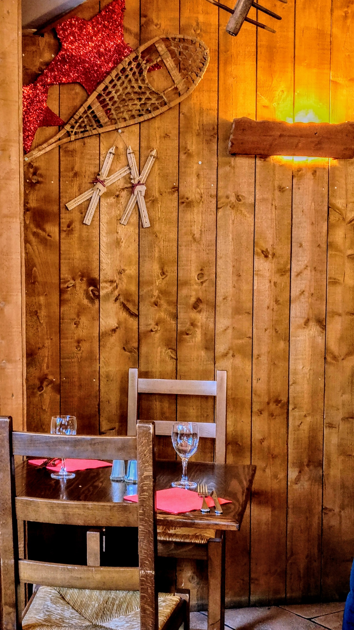 Endroit sympa et chaleureux ne serait-ce déjà que par la déco, résolument Savoyarde. Mais l'accueil est également chaleureux et le sourire toujours présent. La carte est variée. Cela va de la grillade, cuite directement dans la cheminée, (qui participe au décor), aux pizzas, tartiflettes etc... Pas de la gastronomie bien sûr, mais quand même un lieu très agréable avant, (ou après), une séance ciné ou pour passer un petit moment romantique lorsque dehors le temps se fait froid et humide.