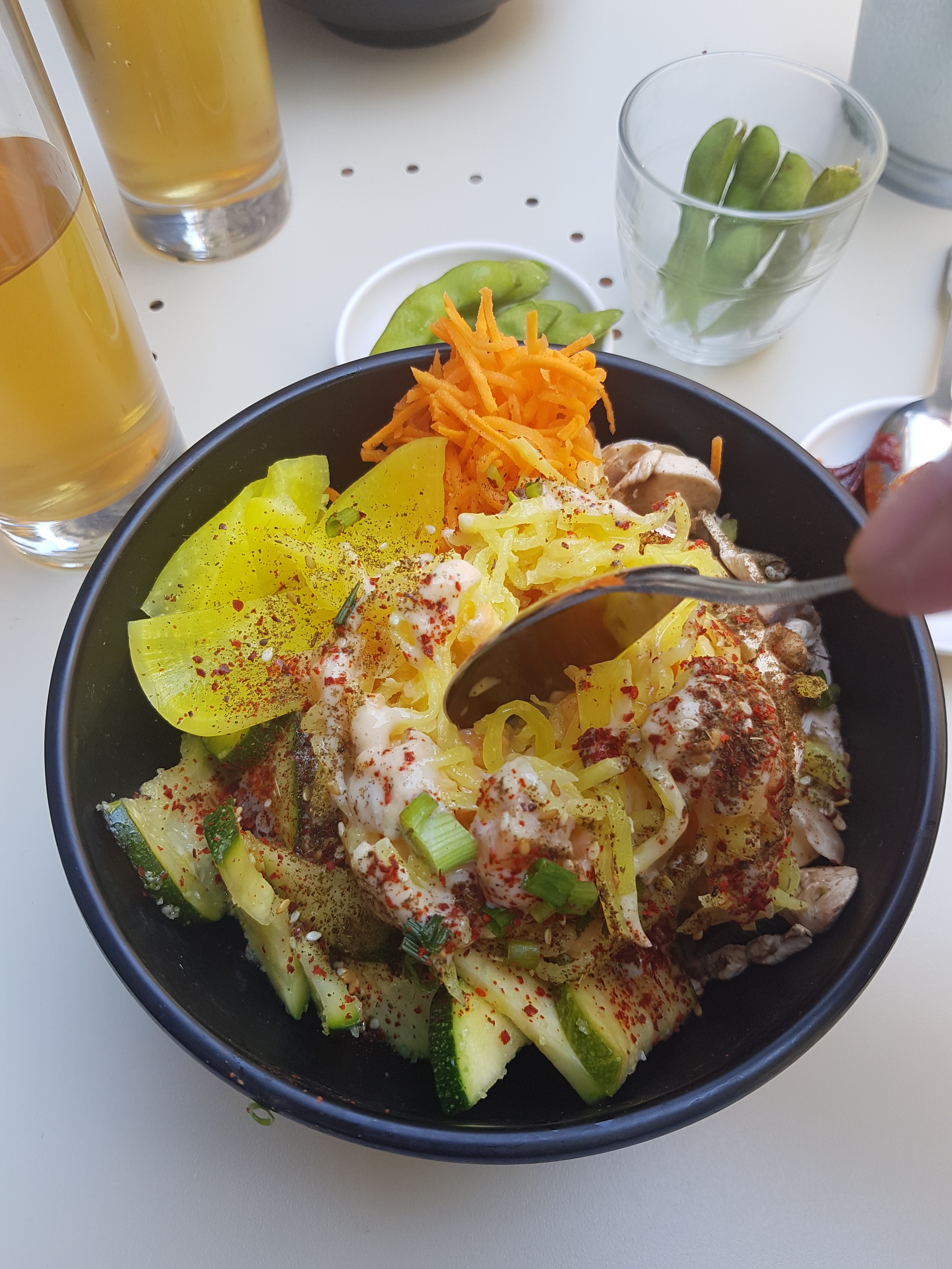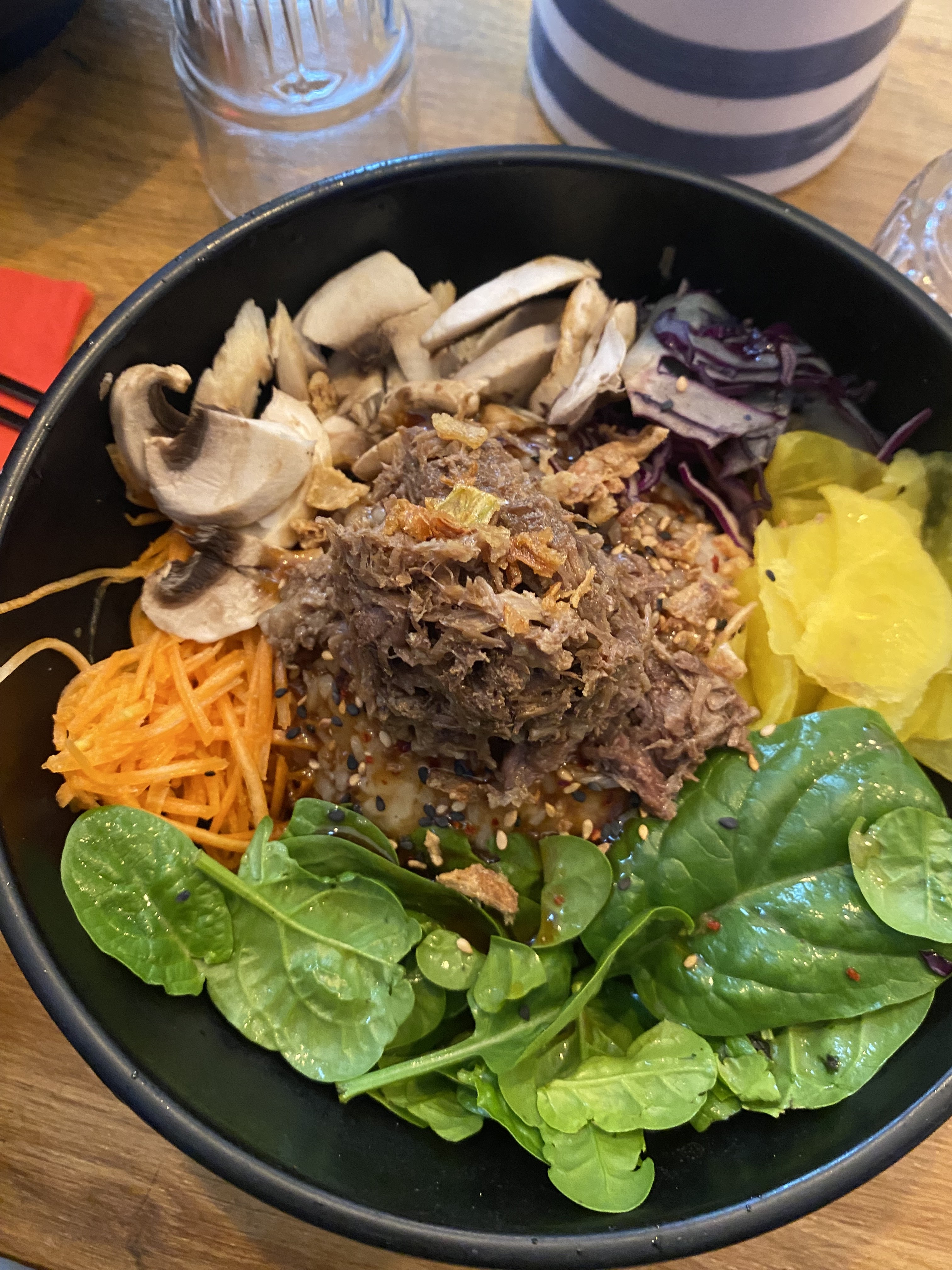 Habitués aux bibimbap, nous n’avons pas du tout retrouvé les multiples saveurs de ce plat coréen. Si vous aimez les concepts de type pokebowl cet endroit vous conviendra peut être mais si vous êtes amateur de vraie cuisine coréenne, passez votre chemin.