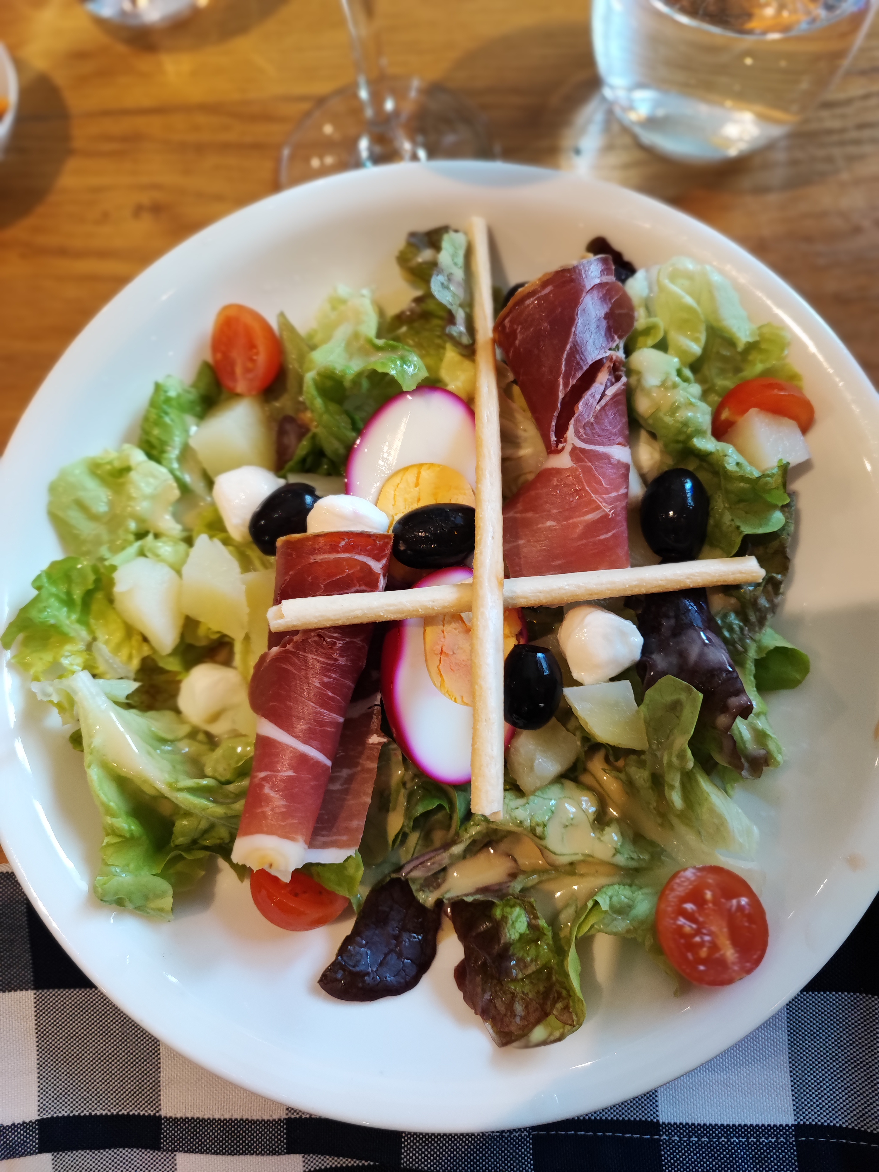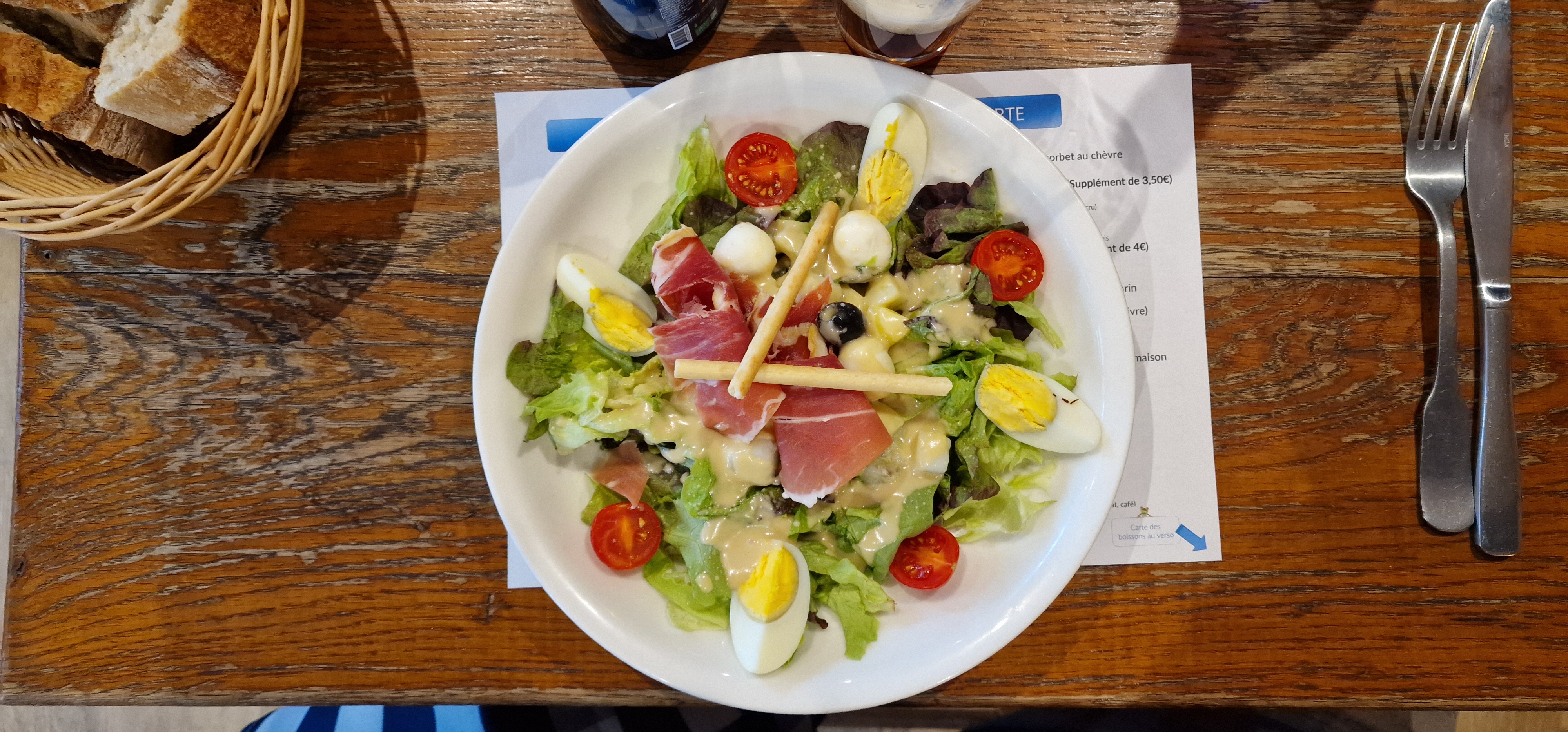 La qualité n'est pas au rendez vous...salade à la carte à 15 euros.. elle était dans le menu grenouille...une honte...un oeuf dure cuit de 4 jours..il était vert. Pommes de terres à l'eau cuites également depuis plusieurs jours.. olives industrielles. Vraiment vraiment le bas de gamme et premier prix..billes mozza pareil..vinaigrette trop présente et acide..assiette débarrassée avec l'œuf complet..ces fameux bouts de pommes de terres détrempés à l'eau et ces olives sans âmes...il n'y avait que 4 personnes dans le resto en plus de nous...le chef aurait pu au moins renvoyer une salade qui valait ces 15 euros. Je n'ai rien mangé de l'entrée..si le chef ne sait pas faire une salade composée avec au moins un oeuf cuit du jour.. il serait temps de changer de métier !! Ailleurs on mange un super menu pour 15 euros!! On avait pas trop le choix de s'asseoir ou l'on voulait alors que le resto était vide ..accueil pas chaleureux...nous aussi nous aurions peut être voulu manger au soleil.. Bref nous avons voulu tester. Mais nous ne reviendrons pas...ailleurs les chefs cuisiniers ..ba savent cuisiner tout simplement...baisser les prix de votre carte...et enlever tous ces suppléments!Quand on applique ces tarifs, il faut savoir y mettre la qualité des produits dans l'assiette du client!!! Et cuire vos œufs le jour même..cela prend 10 mn!.l'entrée que j'ai eu n'aurait jamais du être servie..vous devriez avoir honte!