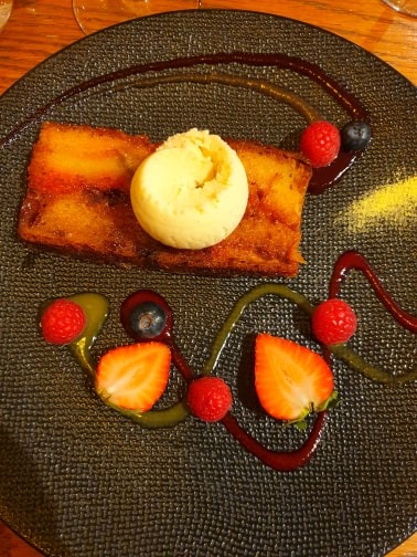 Un vrai délice de l'entrée au dessert en passant par le plat. Un tartare de poisson bien frais, des grenouilles bien grillées comme on les aime (avec surprise sur le gâteau la possibilité d'en avoir quelques unes en plus) et enfin un pain perdu du chef et ses fruits. On s'est régalés! Même les assiettes sont belles. Plat servis chaud et serveurs disponibles. Je vous le recommande. Plus qu'à essayer l'été avec la belle et grande terrasse. Allez y les yeux fermés.