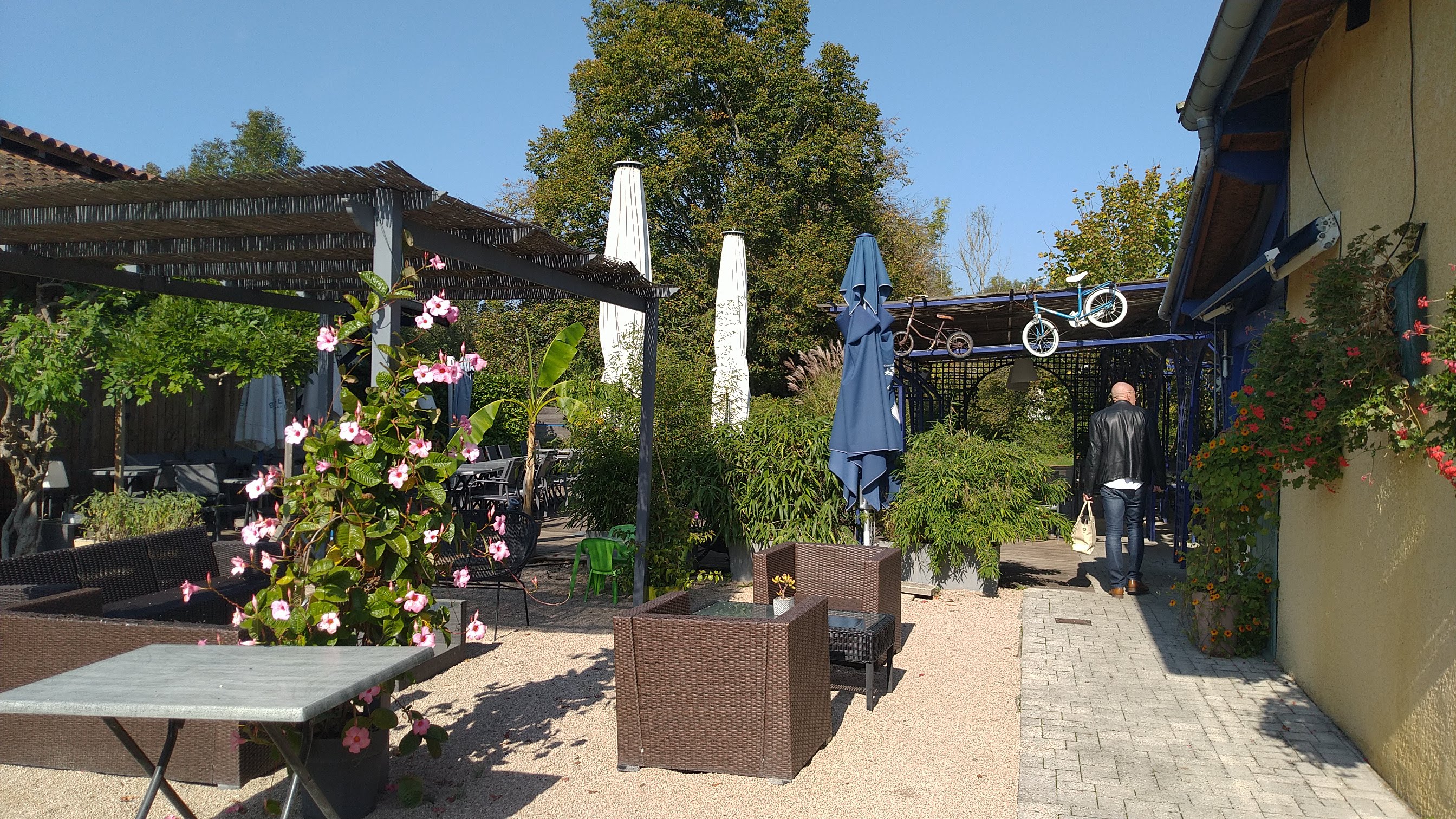Belle terrasse ombragée, les mesures de distanciation sont respectées entre les tables, le contrôle pass est effectué. Le personnel est accueillant. Les plats sont de qualité et avec une excellente présentation. Ce qui entache vraiment la prestation ce sont les prix des menus semaine 33,50 euros en.premier prix et cerise sur le gâteau les suppléments : 4 euros pour le marbré foie gras et 6 euros pour le poulet de Bresse et en passant 7 euros le verre de Julienas. Ces prix me paraissent extravagants pour être servis en semaine, à midi, sur une terrasse de jardin.Dommage...