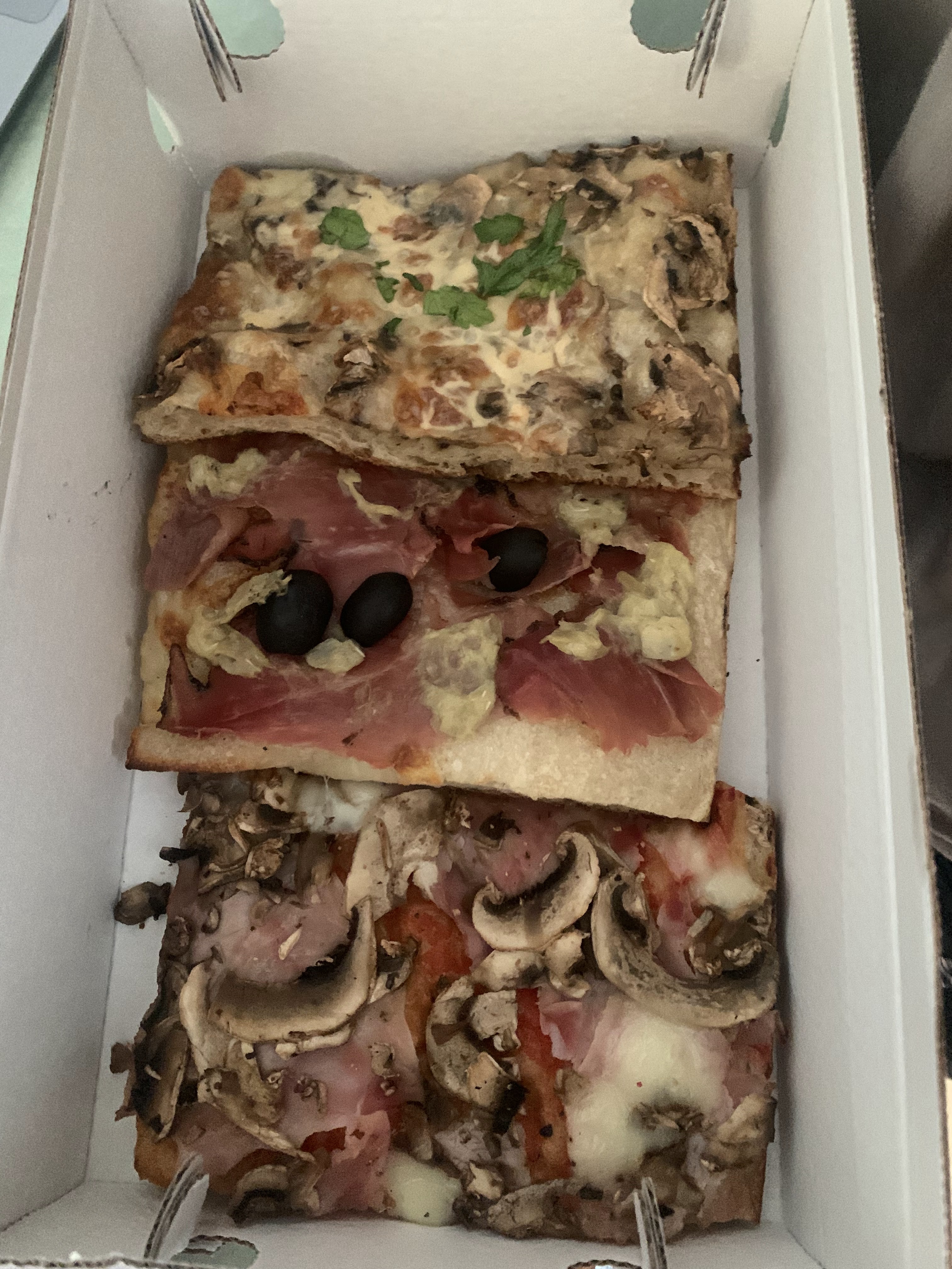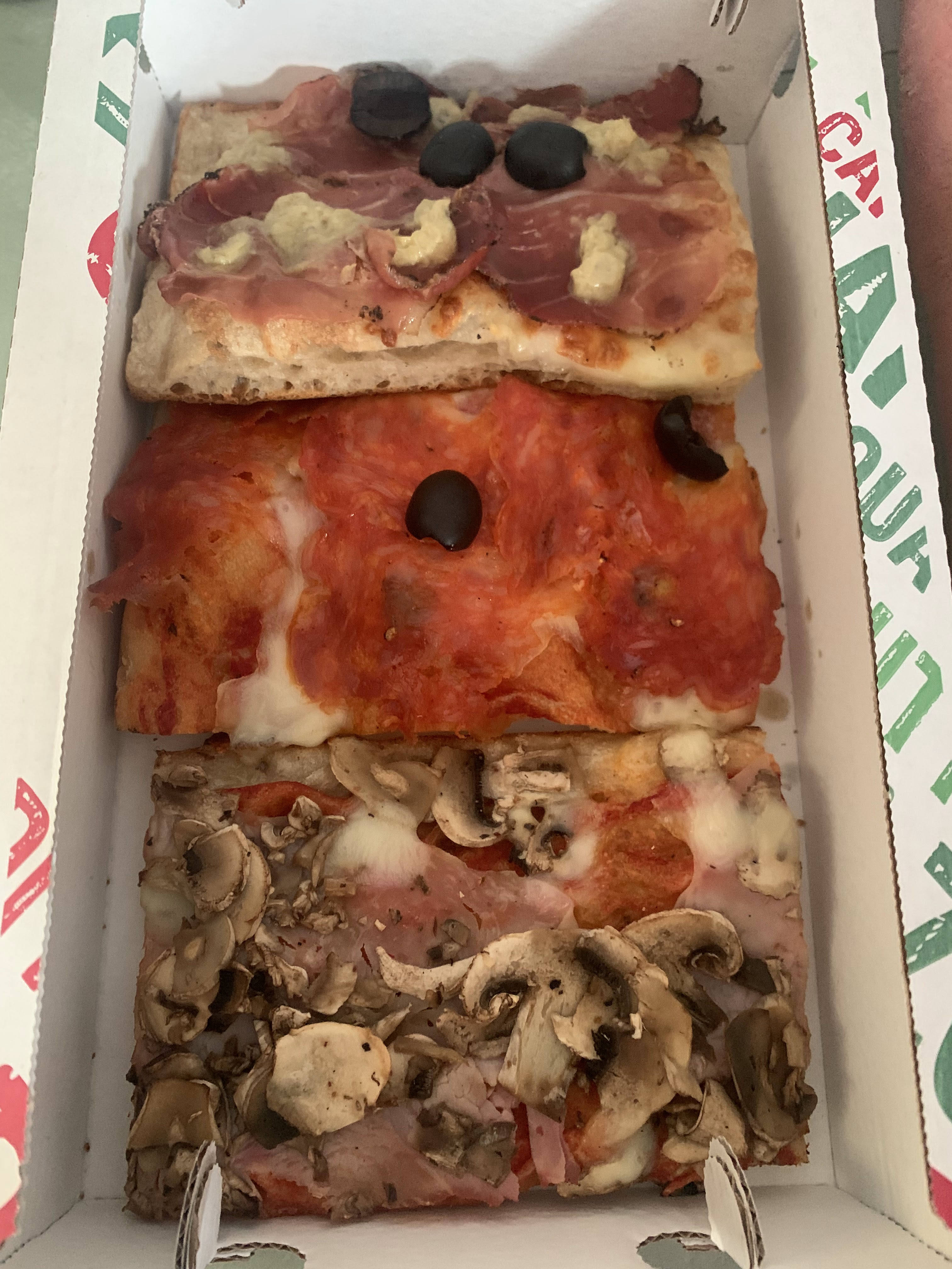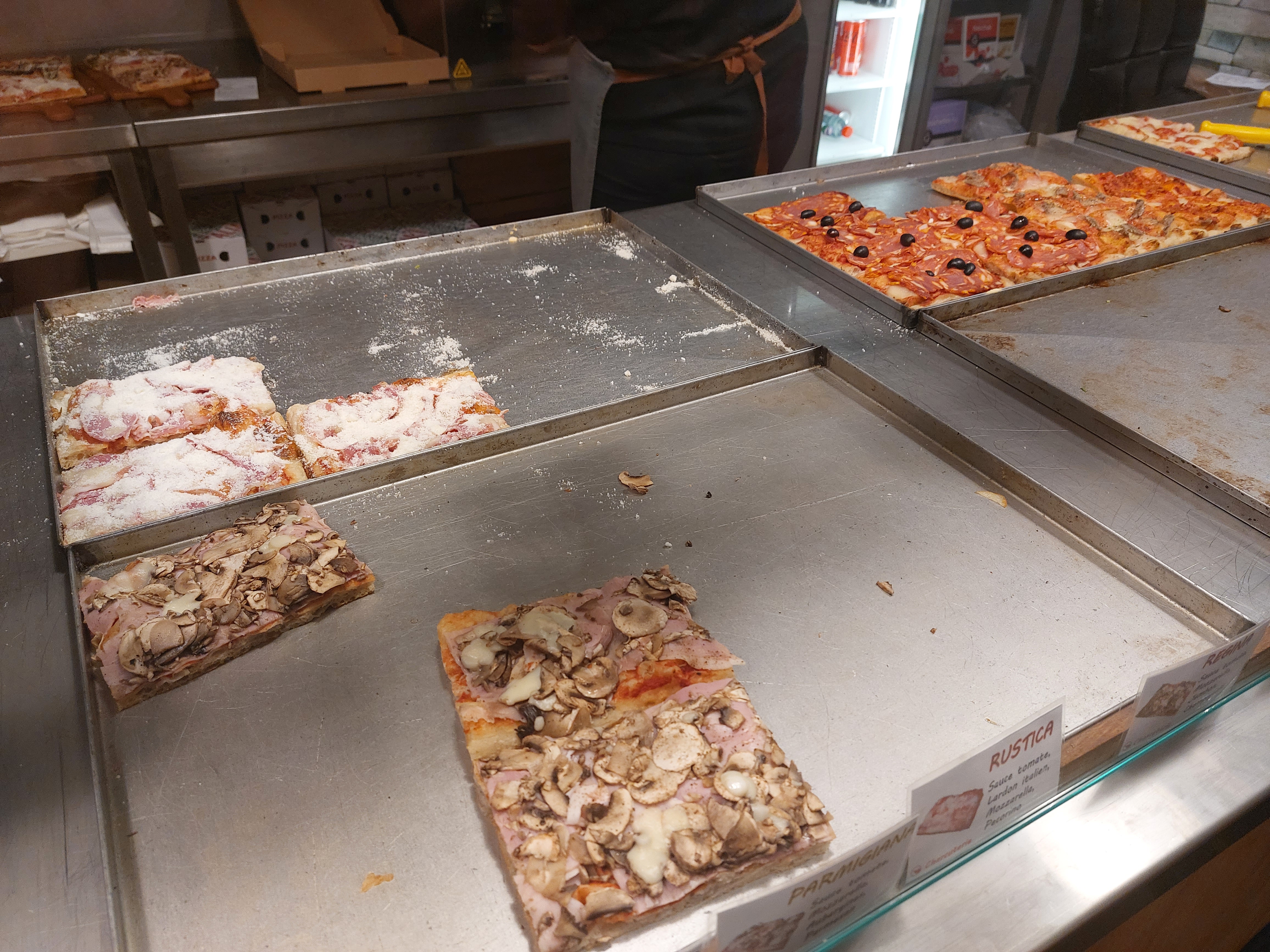 Très bonne pizza al taglio Les propriétaires sont italiens...molto buono C'est trop bon on se croirait à Rome.