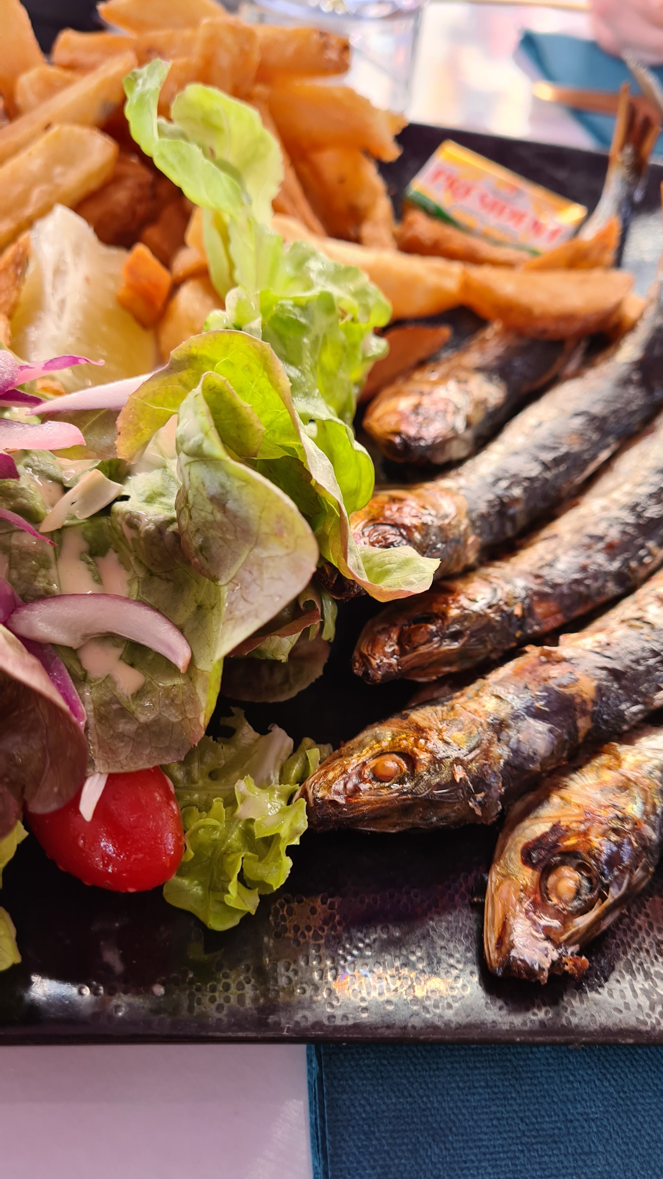 5 petites sardines trop cuites et des frites immondes pour 19,50€. La blague! Mais comment j’ai fait pour me faire avoir comme un touriste étranger sans regarder avant les avis déjà postés sur Google !!!
