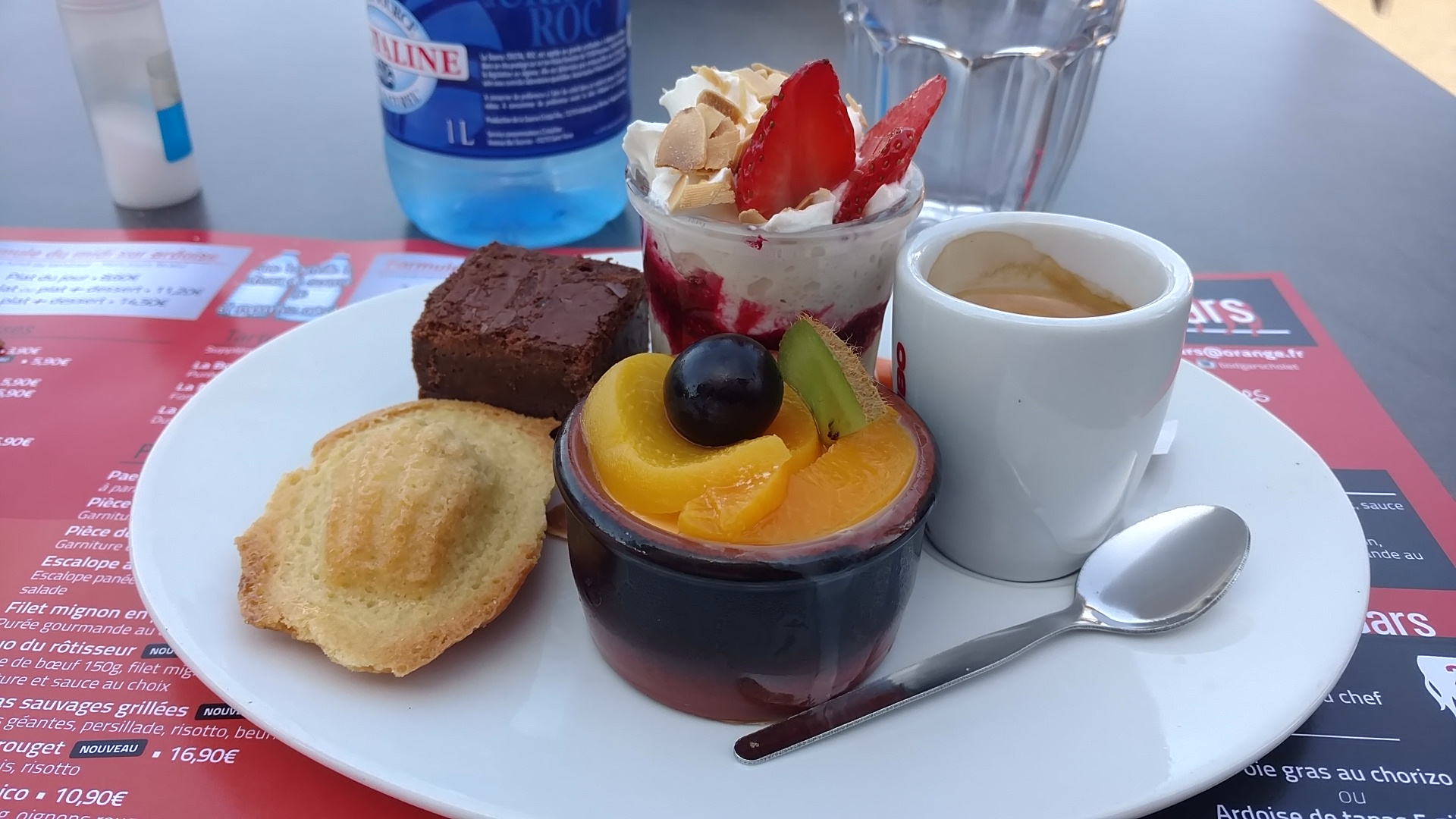 Serveurs très sympathique, terrasse agréable, prix normaux, et surtout des frites maison ! J'ai aussi aimé la bouteille de 1L d'eau à 1€, surtout qu'elle était bien fraîche en ce jour de temps estival ! Une pause bien agréable
