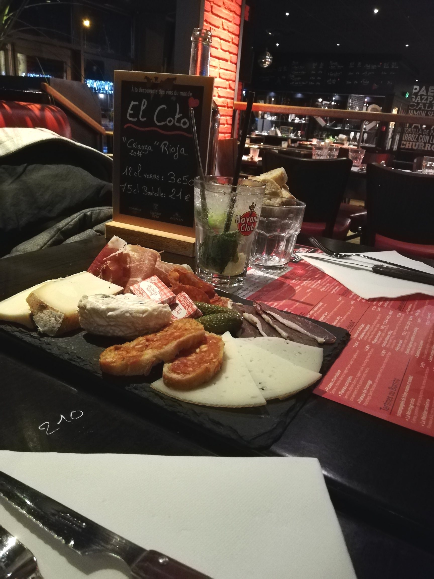 L'endroit est beau, le personel agreable et la deco des assiettes plutôt soigné, mais la qualité de ses produits pas terrible. Un trés mauvaise essay d'étre un resto espagnol Son concepte de tapas Il est bién pensé, malheureusement pas reusit. Les patatas bravas C'est un plat de pdt coupés en cubes de 3cm aprox et frites avec une sauce a base d'oignon ail paprika et pas mal de piment. Pour ça s'appellent bravas. Faut que sa brúle la langue. Pas de petites triangles de pdt de a peine 0'5 cm d'épésséur avec un sort de sauce a base de tomates et poivrons mixés en crú. Les croquettes, je suis désolé mais deguelaises, et la paella... Quelle arnaque.. 14€ pour une paella surgele ou de boite ou ils ont ajoutée une petite mergueze, un petit cuisse de poulet et de petites langoustines aussi surgelées surement. Fin.. L'idée est bone mais faut savoir un minimum de cuisine espagnole pour faire de la cuisine espagnole. Ah et en espagne ont fais pas de la piemontaise, ont fais la Ensaladilla rusa C'est le meme principe mais que des pdt avec petit pois verts, carottes, oeufs cuits thon emieltée, mayo et un petit peu de vinagre rougerouge pour lui doner de l'acidité.