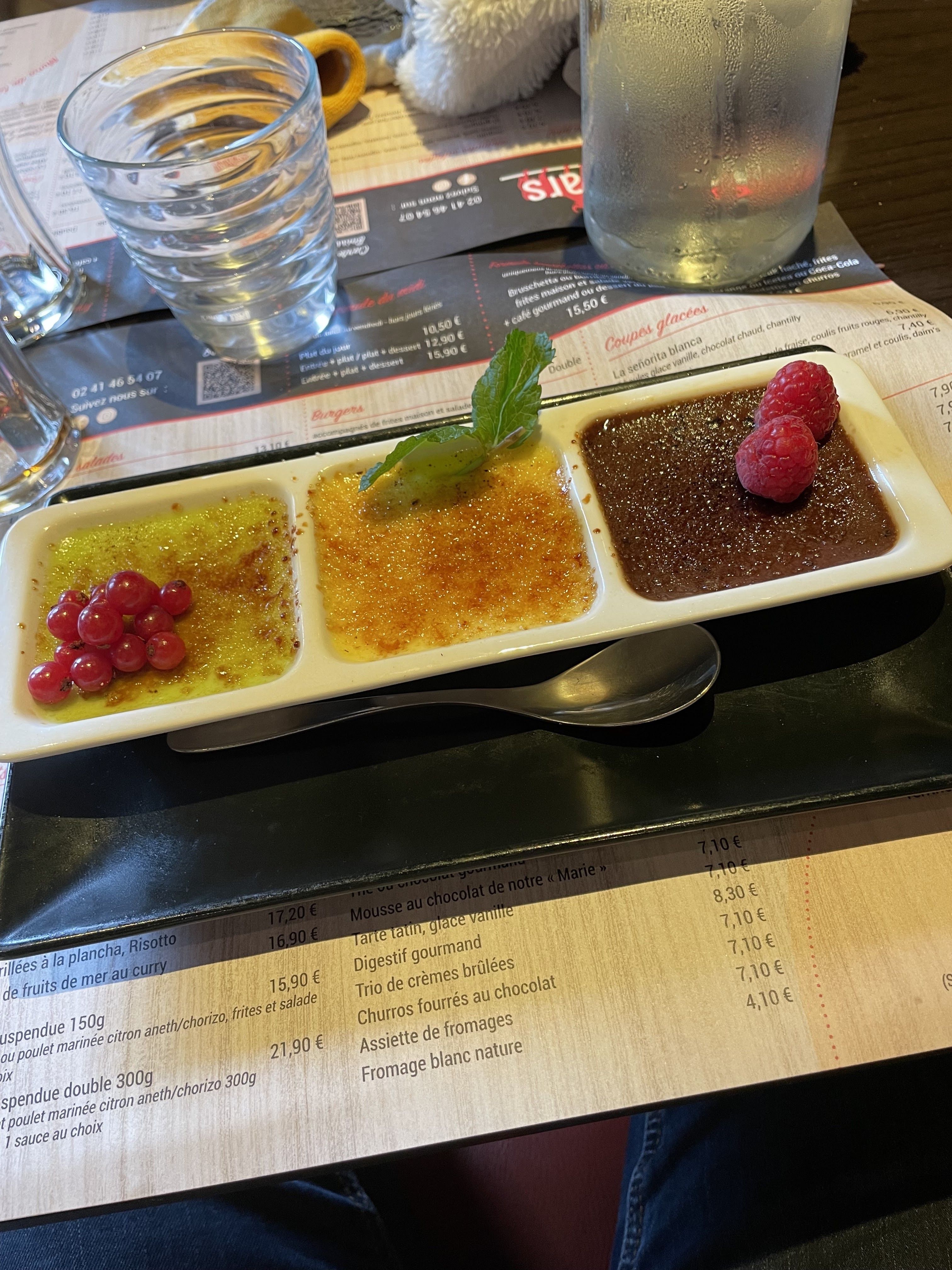 Serveur au top pas trop rapide ni trop lent pour le service, très bon rapport qualité, prix et un vrai coup de coeur pour leur burger classique ainsi que les dessert, une simple coupe trois boules très belle visuellement pour ce que c'est et un café gourmand très divers . Merci l'équipe nous reviendrons
