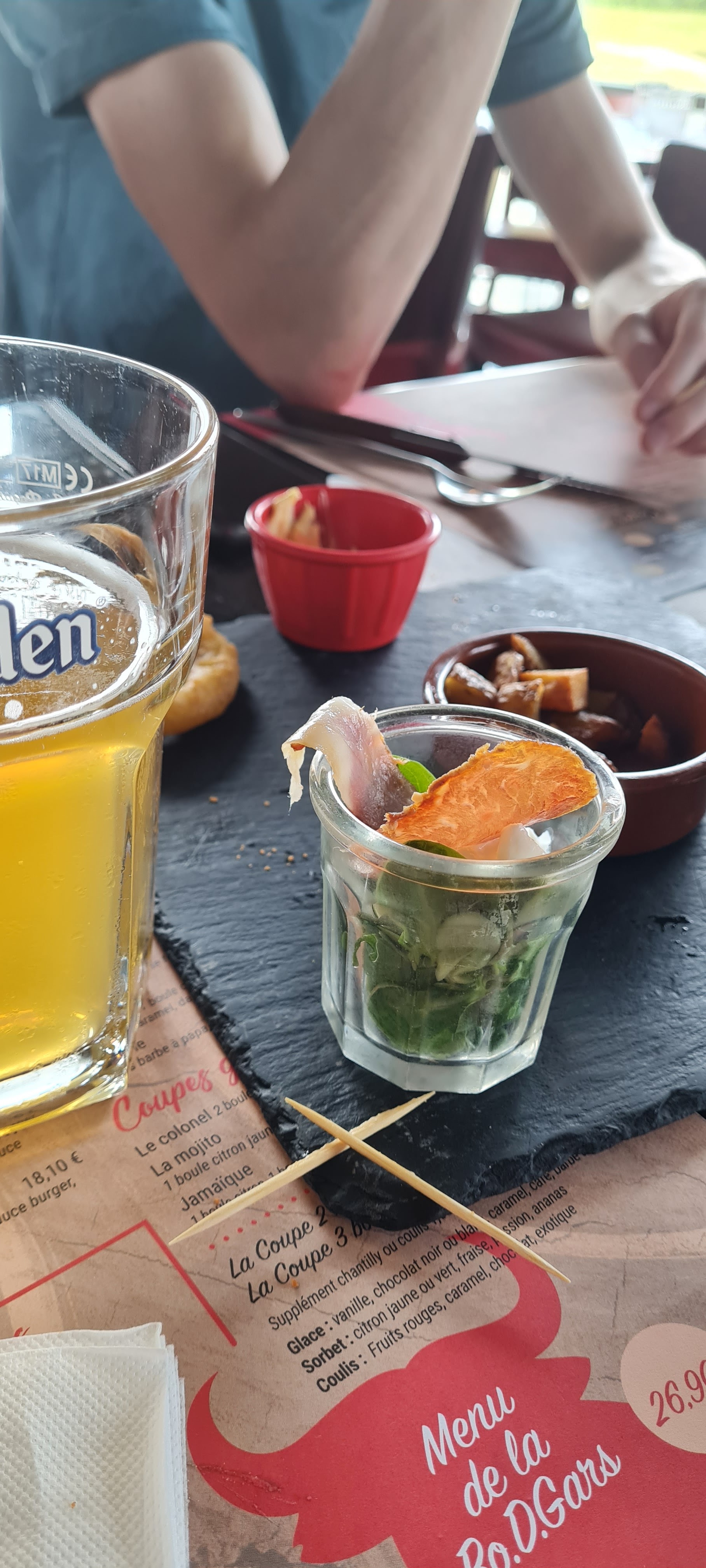 Nous devions manger le midi en 45min. Défi accepté et réussi par l'équipe de Bo'd'gars. Je recommande.