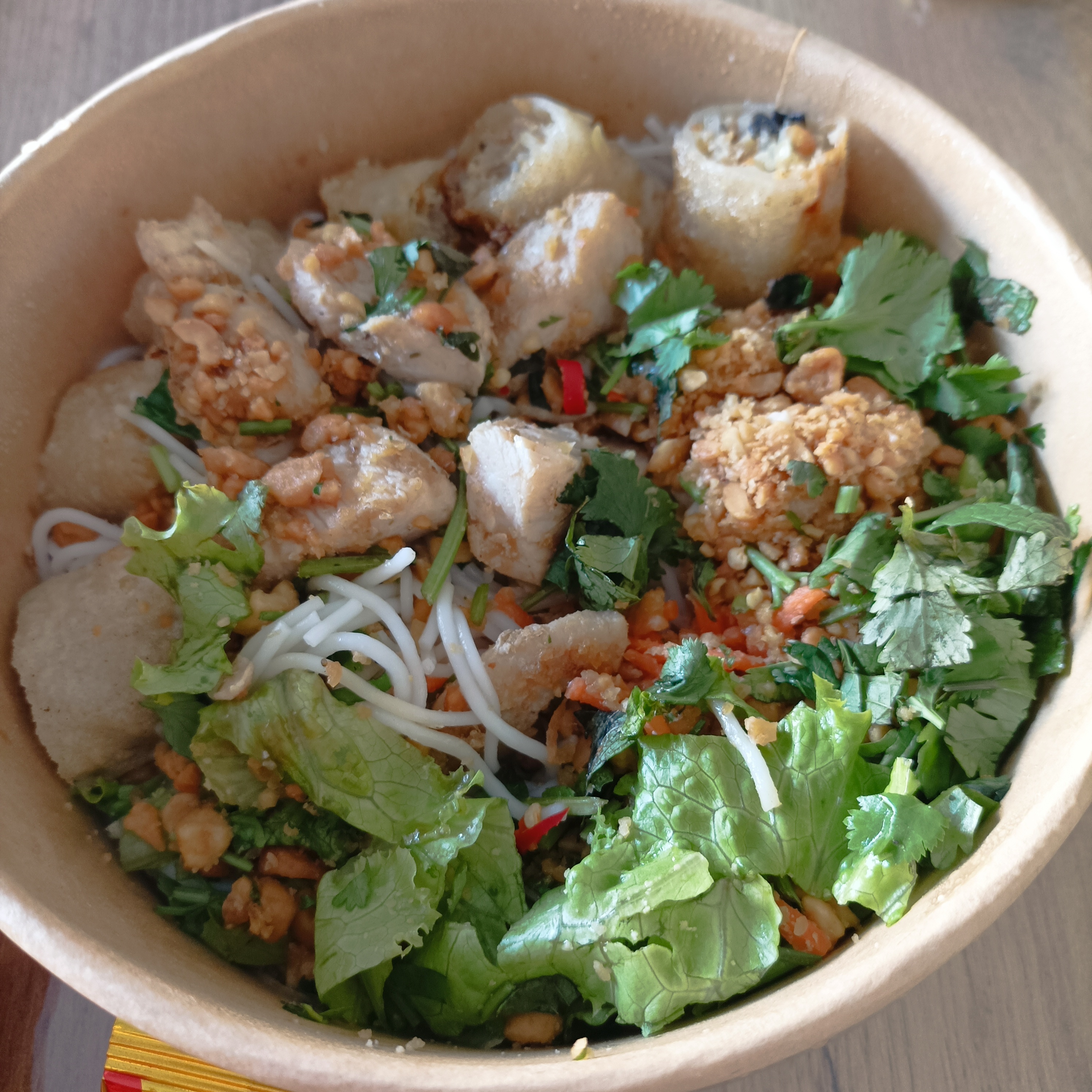Super bo bun ! Troisième fois en livraison. Bo bun copieux, avec des ingrédients de qualité. On s'est régalés. Un petit mot gentil écrit sur le sac.