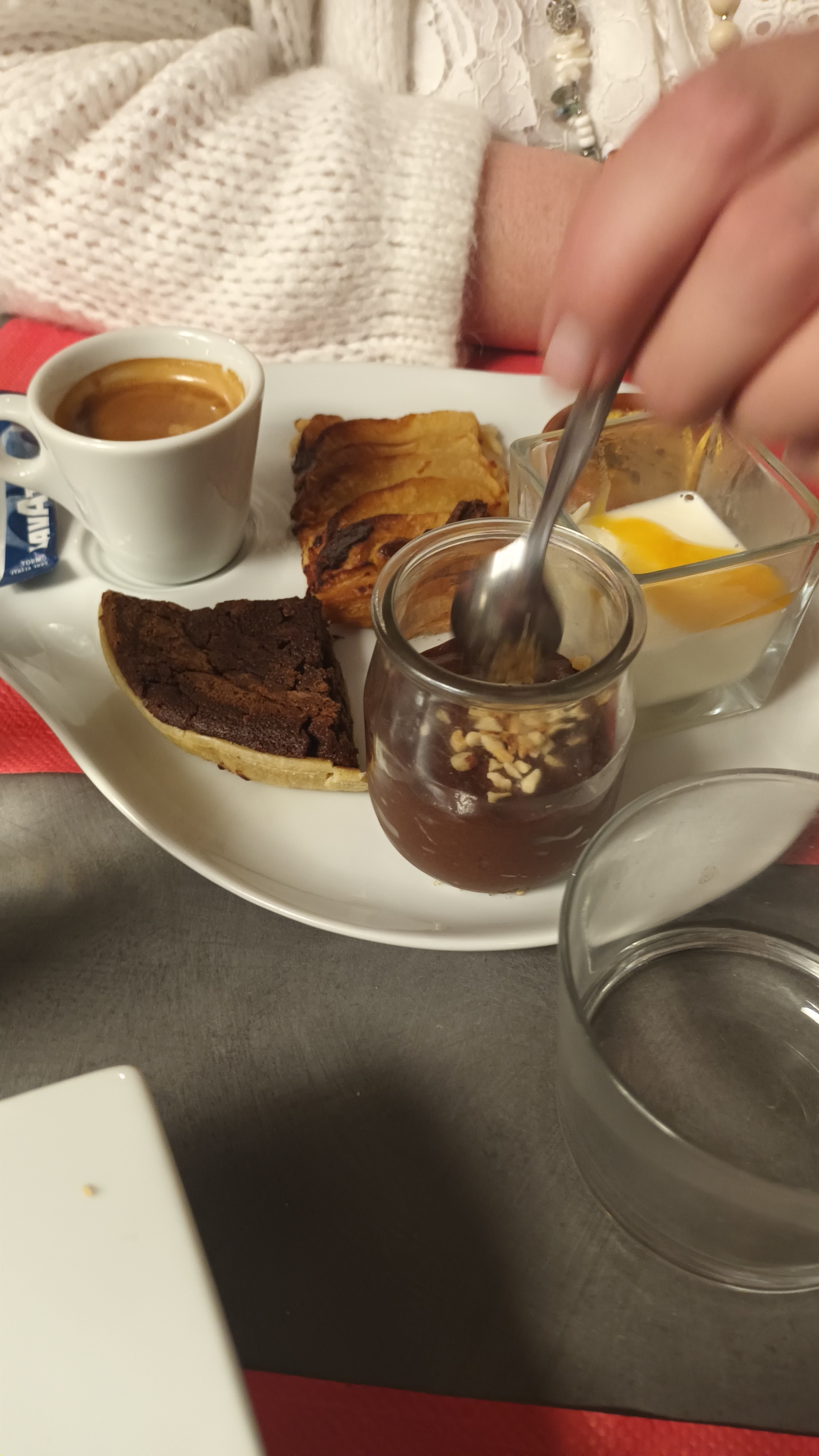 Tout est excellent de l entré au désert si vous avez encore fin pour un dessert !! mais le café plus que gourmand ! Je le recommande Merci pour cette excellente repas