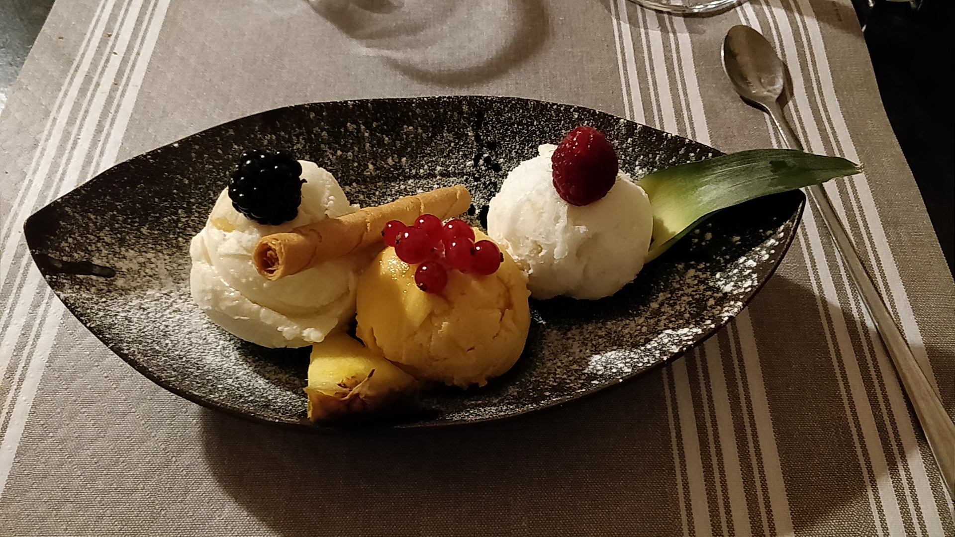 Très très bien mangé, 3menus différents, 3 menus délicieux. Dessert très bon aussi, je recommande ce restaurant. 1 point négatif, on a eu un peu froid dans la verranda mais le serveur nous avait prévenu.