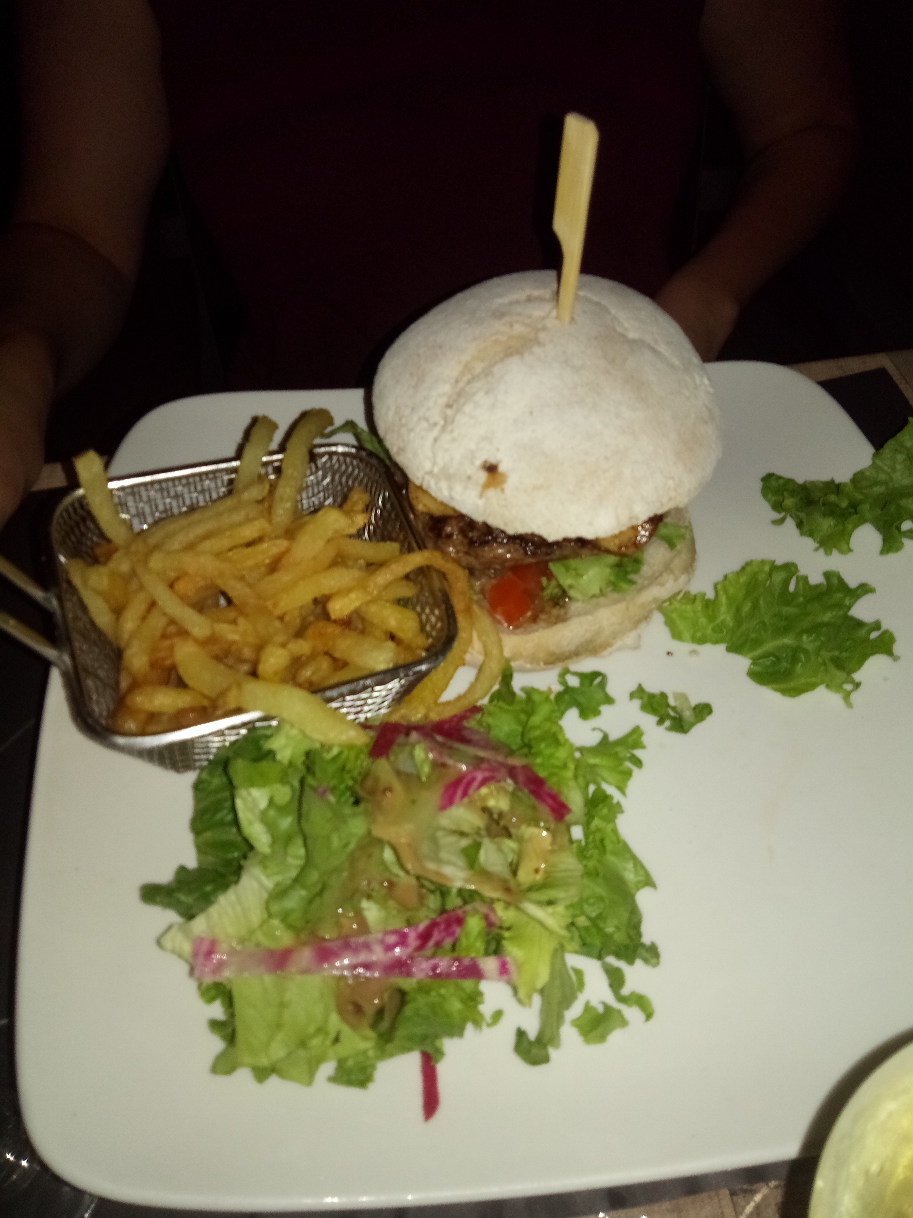 Très bonne expérience ! Les frites d'accompagnement sont très bonnes, le burger au chèvre est délicieux, aussi bien la viande que le fromage et le pain. Beaucoup de restaurant font des burgers mais je suis assez souvent déçu, là c'était parfait ! La sangria n'est pas mal non plus et les employés ont été agréables également. Petit point d'amélioration : suppression des pailles en plastique jetable et acceptation des chèques vacances.
