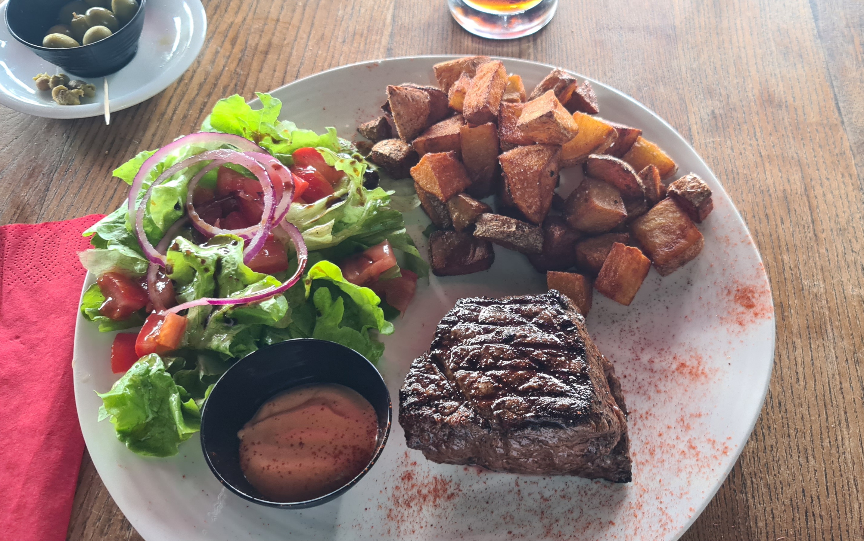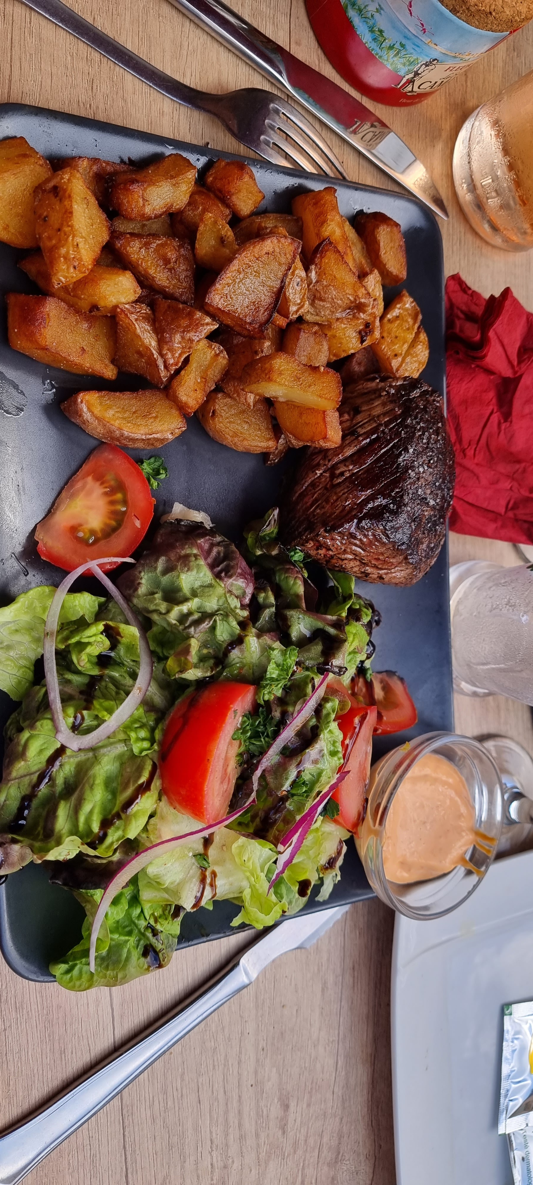 Excellent repas. Le pavé de taureau est juste divin . Les quantités dans l’assiette sont parfaites. Le personnel chaleureux et disponible Je recommande