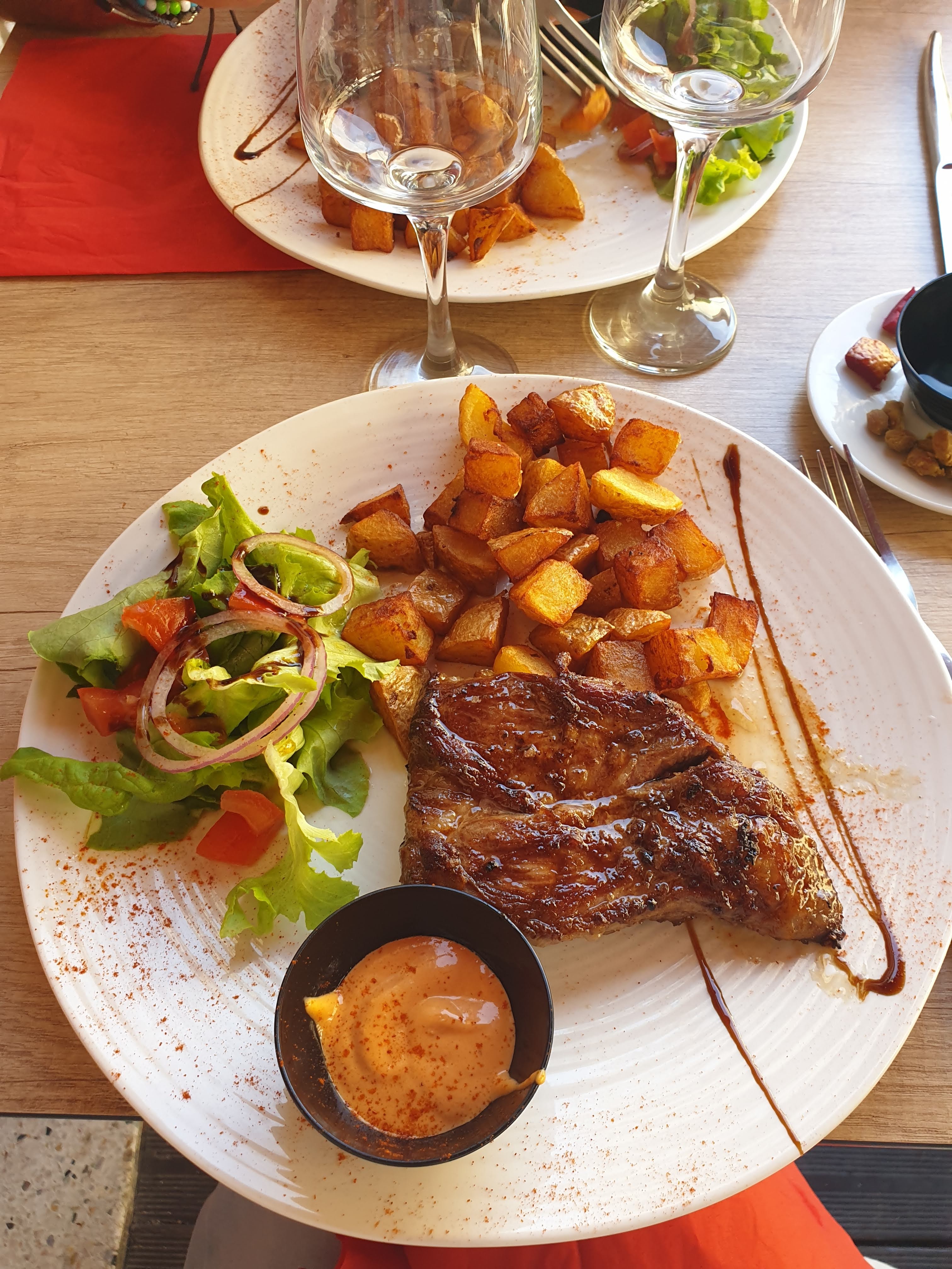 Absolument parfait ! Légèrement excentré de la place principale, la Bodega nous a accueilli avec le sourire et une carte qui nous a mis l'eau à la bouche ! Le service etait agréable et attentionné : ce qui mérite d'être souligné ! Un tartare de taureau délicieux, un pavé de taureau cuit à la perfection, bref : une adresse à retenir ! Merci pour l'accueil lors de ce week-end de l'Ascension