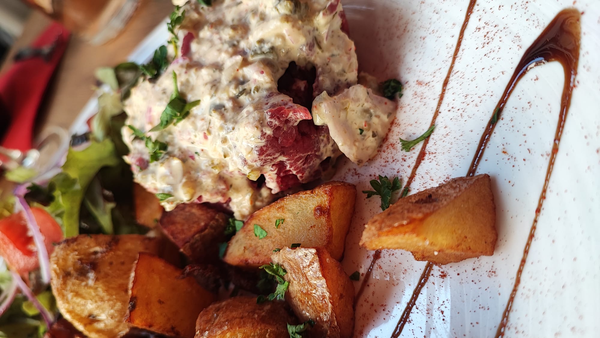 Accueille sympathique, ambiance au top sans parler des tapas et des plats qui nous laisse sans voix. Je recommande à 100%