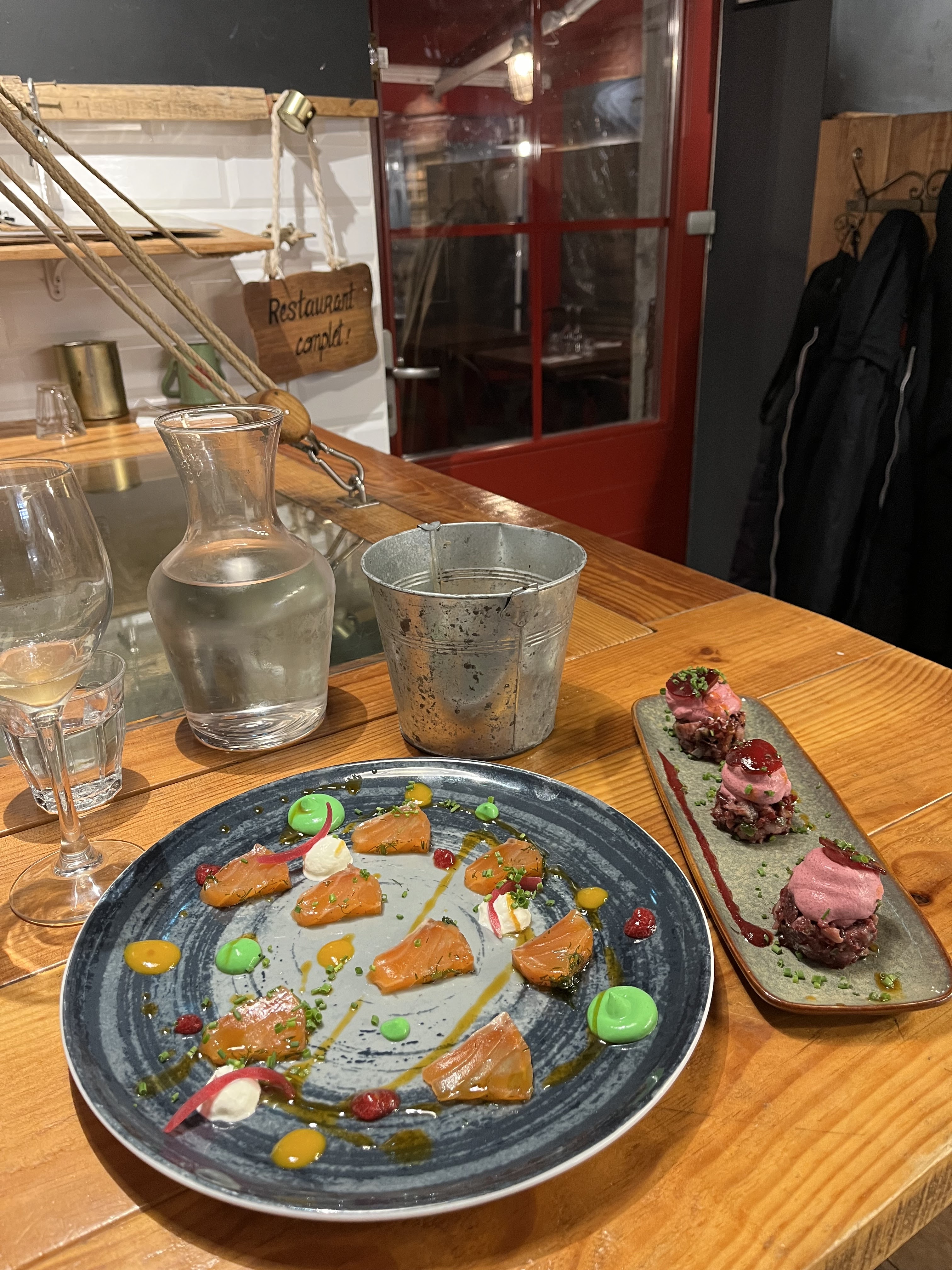 Un petit resto plein de surprise. Nous avons choisi de goûter plusieurs plats, les assiettes sont très bien présentées et très bonnes. C'est plutôt original avec des associations saumon gravlax et mousse wasabi, tartare de hareng et betterave cassis... Portion limitée mais qualité au rendez vous. L'accueil est très sympa. Un resto qui donne envie d'y revenir.