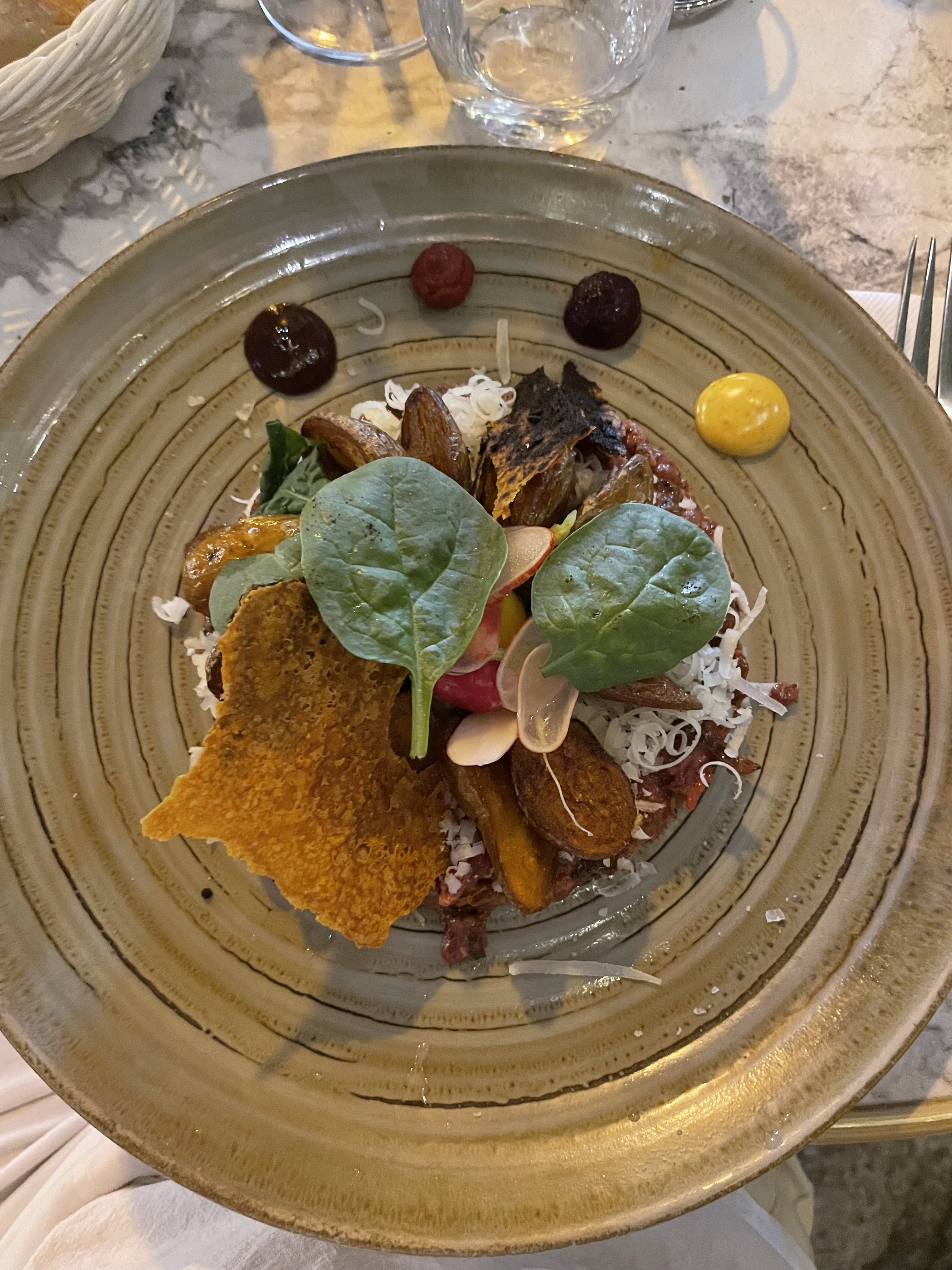 Tout était excellent de l’entrée au dessert. Le cadre est t’ait hyper sympa. Idéal pour un dîner romantique. Le risotto était plongé dans une sauce crémeuse a la truffe. C’était un vrai délice. Le dessert au citron était très frais et pas trop sucré. Une très belle découverte.