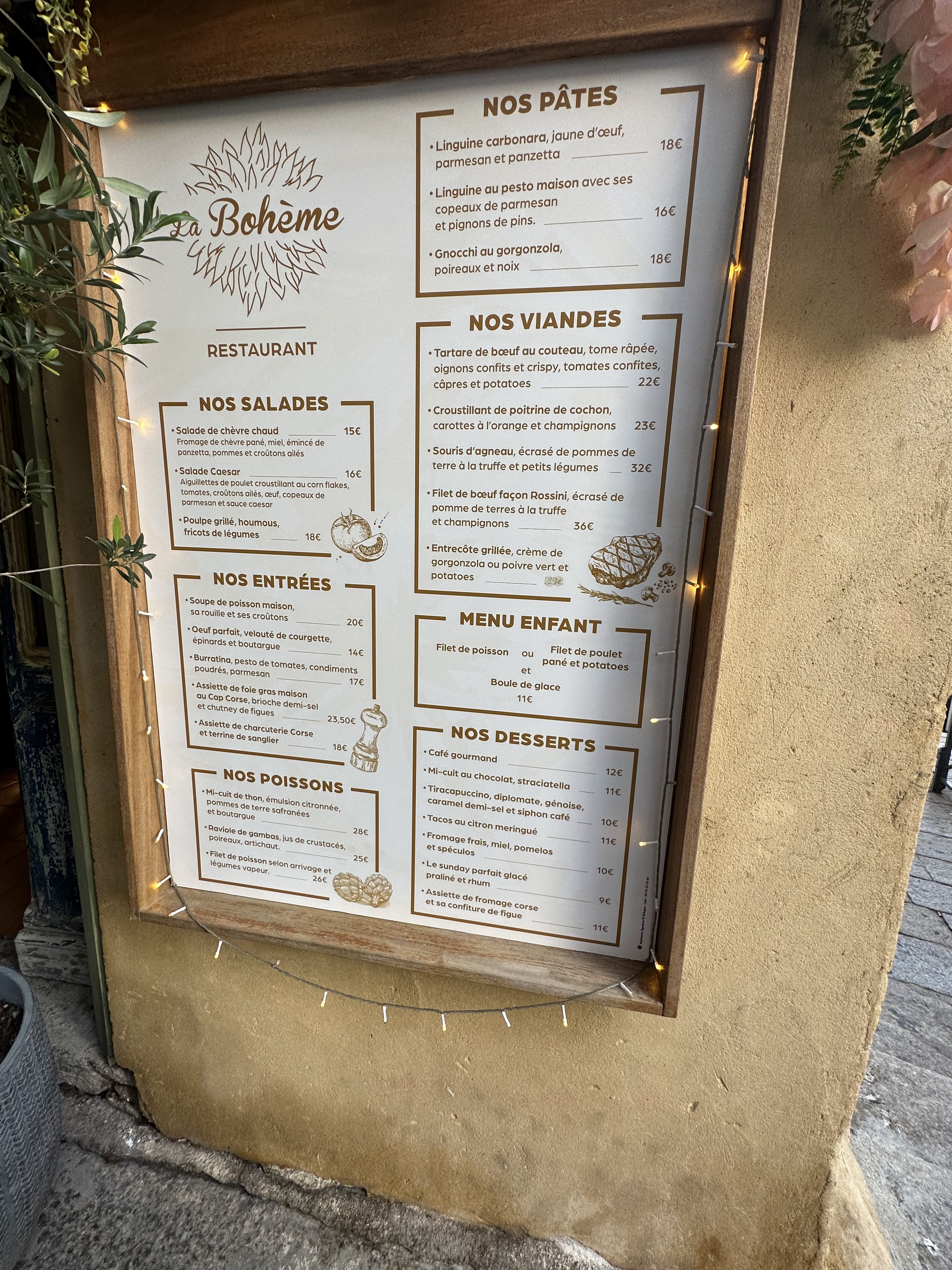 La bohème est un magnifique restaurant, avec un cadre magnifique…une vue en hauteur sur le port. Avec une déco élégante, soignée et raffinée qui se reflète dans la carte des plats servis. Les plats sont juste présentés avec beaucoup de raffinement tout en étant copieux et un délice pour les papilles…je vous recommande ce lieu chaleureux et accueillant avec une équipe en salle et en cuisine très attentionnée…allez y vous ne serez pas déçu…et en plus vous ne faites pas racketter en recevant l addition😉