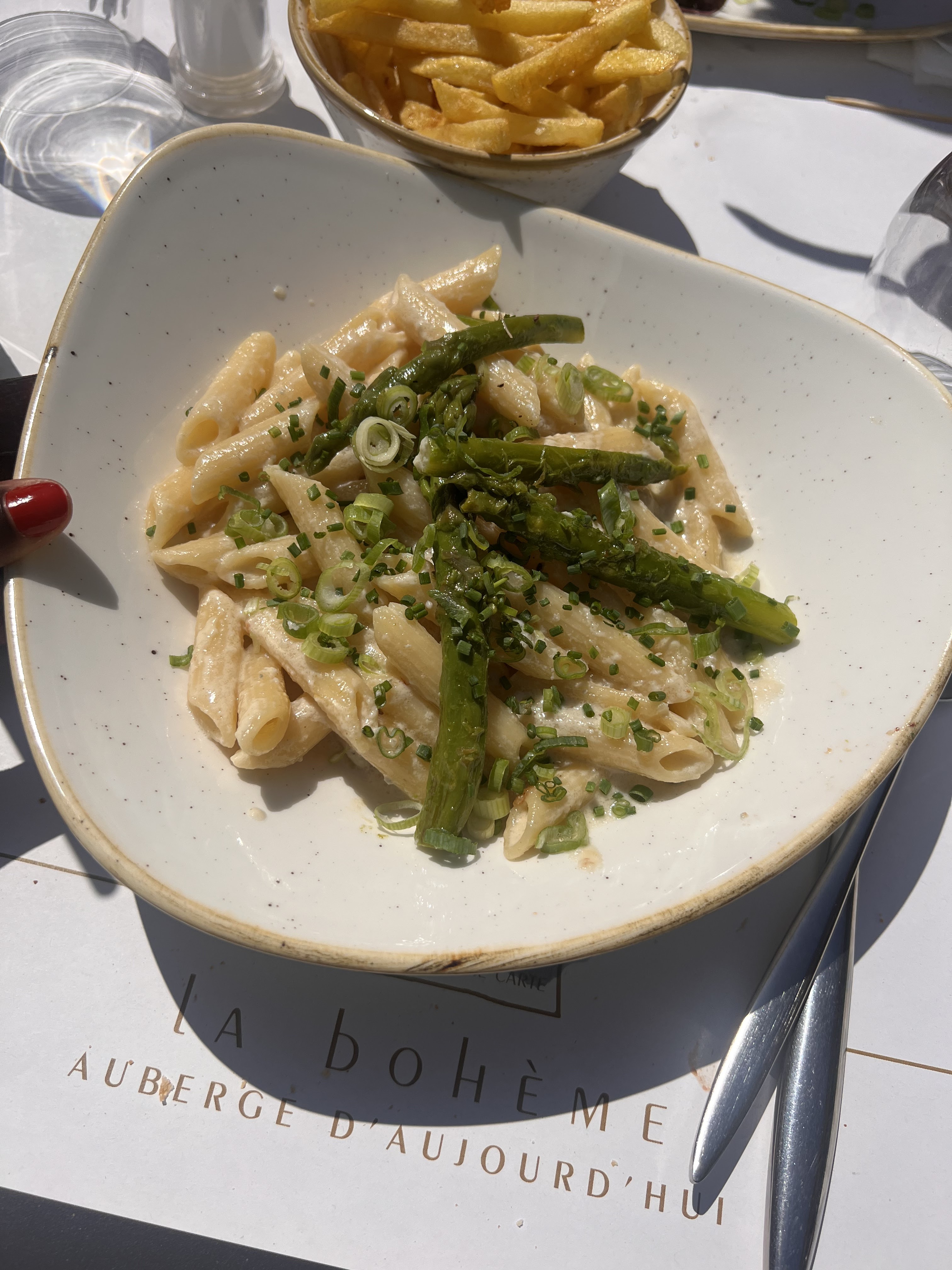 Un régal! Nous avons passé un excellent moment en famille, attablés en terrasse de ce coquet restaurant! Nous nous sommes régalés des plats de la formule, sublimés d'un bon vin. La cuisson du poisson était parfaite! Fondant, goûteux, soyeux et surtout délicieux! La ratatouille qui l'accompagnait était très réussie, elle aussi! Vus les sourires et les éloges de ceux qui m'encouragent, il semble que les Penne au fromage etaient réussies. J'avais hésité, j'aurais dû prendre les deux plats! :) Les enfants ont semblé apprécier leurs menus. Il ne restait plus grand chose dans nos assiettes en fin de repas! Et que dire de ces divins fondants au chocolat accompagnés de leurs nuages de Chantilly?! La cuisine est parfaitement maîtrisée, le service est souriant et très agréable, le décor est plaisant et confortable, ... Le repas était formidable! Nous reviendrons très vite, nous y inviterons nos familles et amis et nous en ferons la publicité! Nous ne manquerons pas de goûter la souris d'agneau qui semblait si appétissante, le tartare de boeuf qui semble valoir le détour, etc... après les Penne! Si vous venez à Senlis, deux incontournables : la cathédrale et La Bohème!