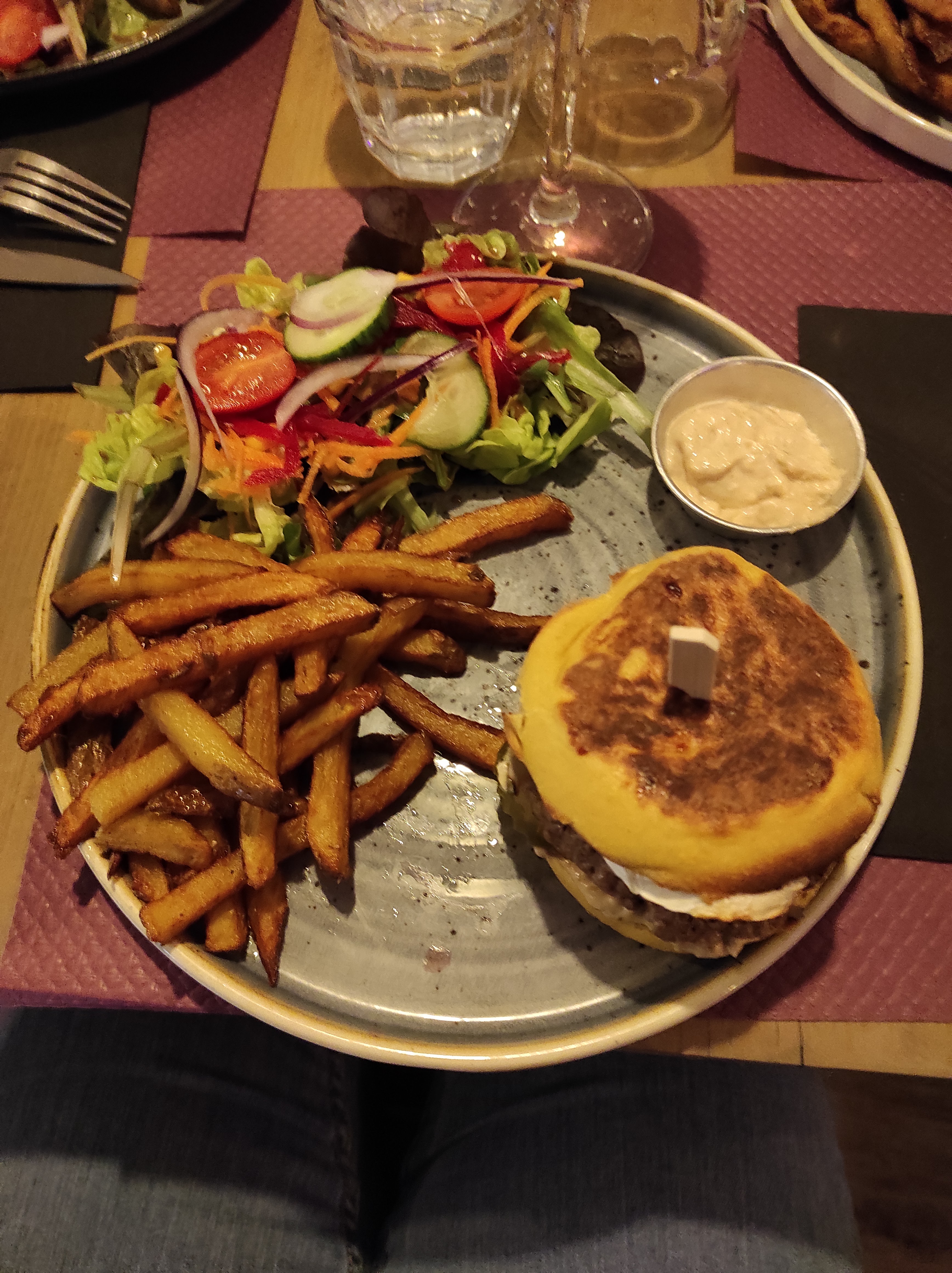 Bon accueil et ambiance conviviale. Les burgers sont très bons ainsi que les frites qui ne sont pas congelées. Un peu déçu par contre car la serveuse s'est trompée sur la cuisson de mon burger. De plus, il n'était pas très chaud, à peine tiède et c'est vraiment dommage. Par, les burgers sont faits à la demande avec du pain fait maison ou une galette. Ils sont très copieux. Je recommande ce resto.