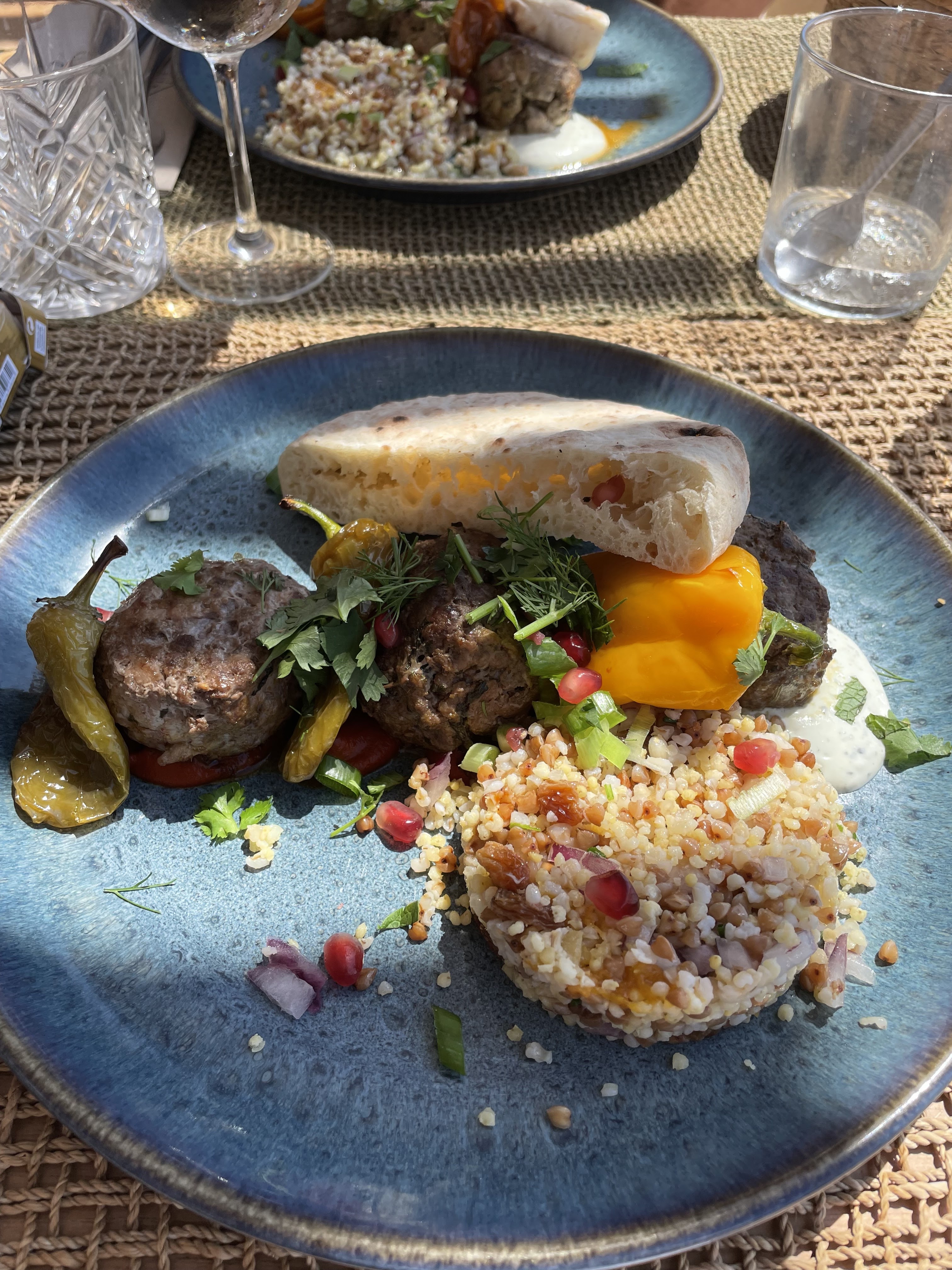 Plats beaucoup trop cher , 3 keftas avec semoule froide 28€, les desserts à plus de 12€ Attrape touristes. Service long nous devons appeler le serveur qui avait oublié nos desserts !! Verre de vin côte de Provence tout simple 7€ le verre ! Je n’y retournerai pas