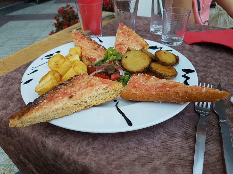 Nous nous sommes arrêtés pour le petit-déjeuner à 00h30... hehe alors nous avons décidé de manger un morceau. Poulpe galicien (passable), calamars grillés (bons), patatas bravas (très délicieux), pa amb tomaque (très délicieux) et un magret (assez bon). Les assiettes n'étaient pas très grandes mais suffisantes. Le temps d'attente était un peu long mais le personnel était plutôt sympathique.