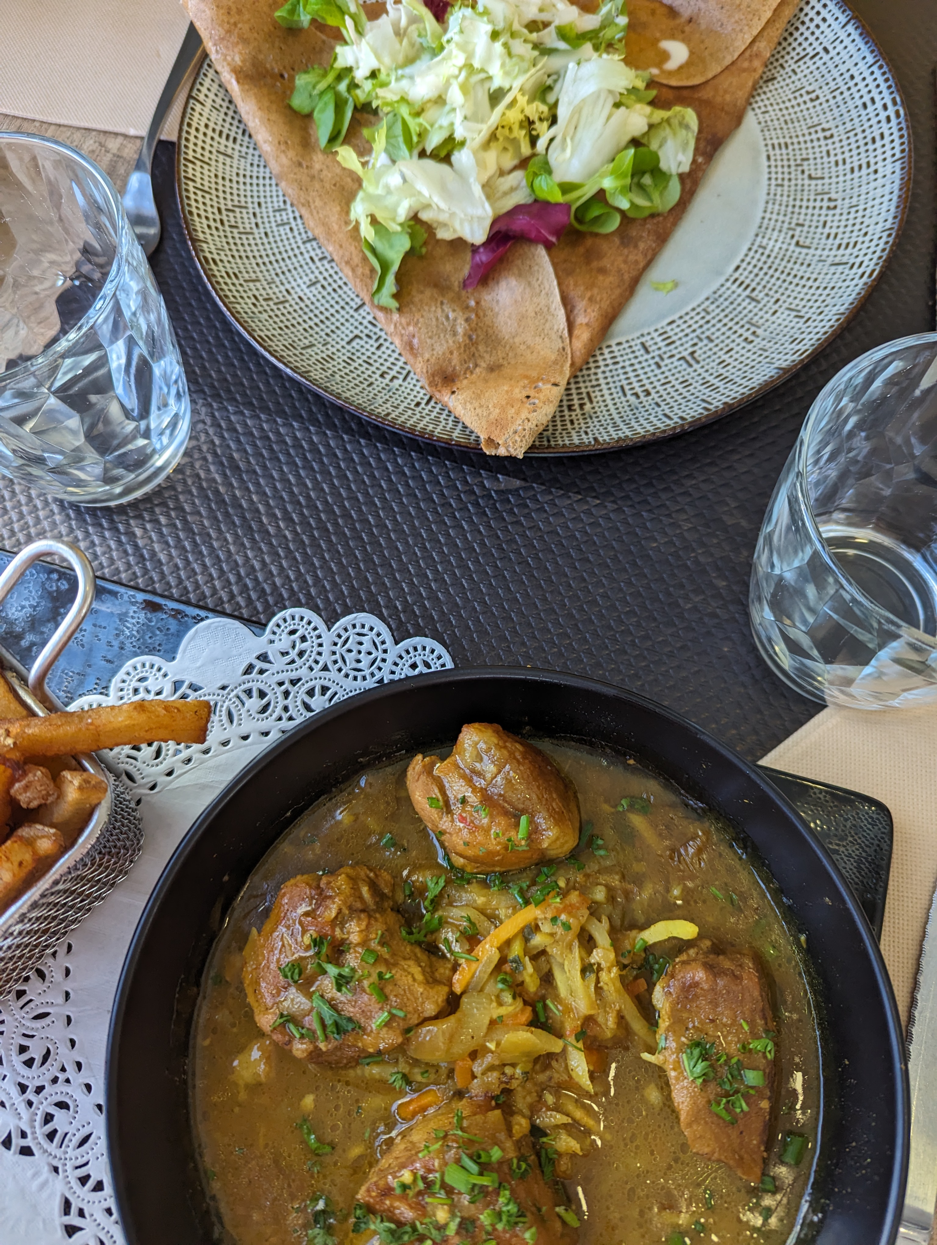 Exelent rien à dire que ce soit cocotte de la mer .cocotte d andouillette...voir les crêpes un régal...nous recommandons sans problème.