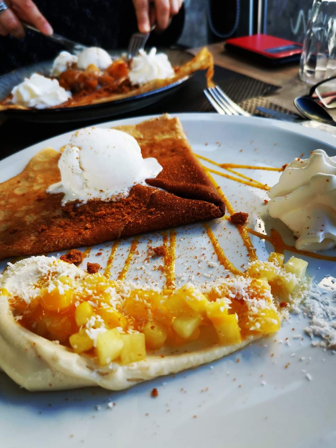 Déçus par les crêpes ! Pas très garnies pour le prix et pas trop de choix. Payé 2,90 € en sup pour avoir une boule de glace en supplément car pas de choix non plus sur les sucrées.