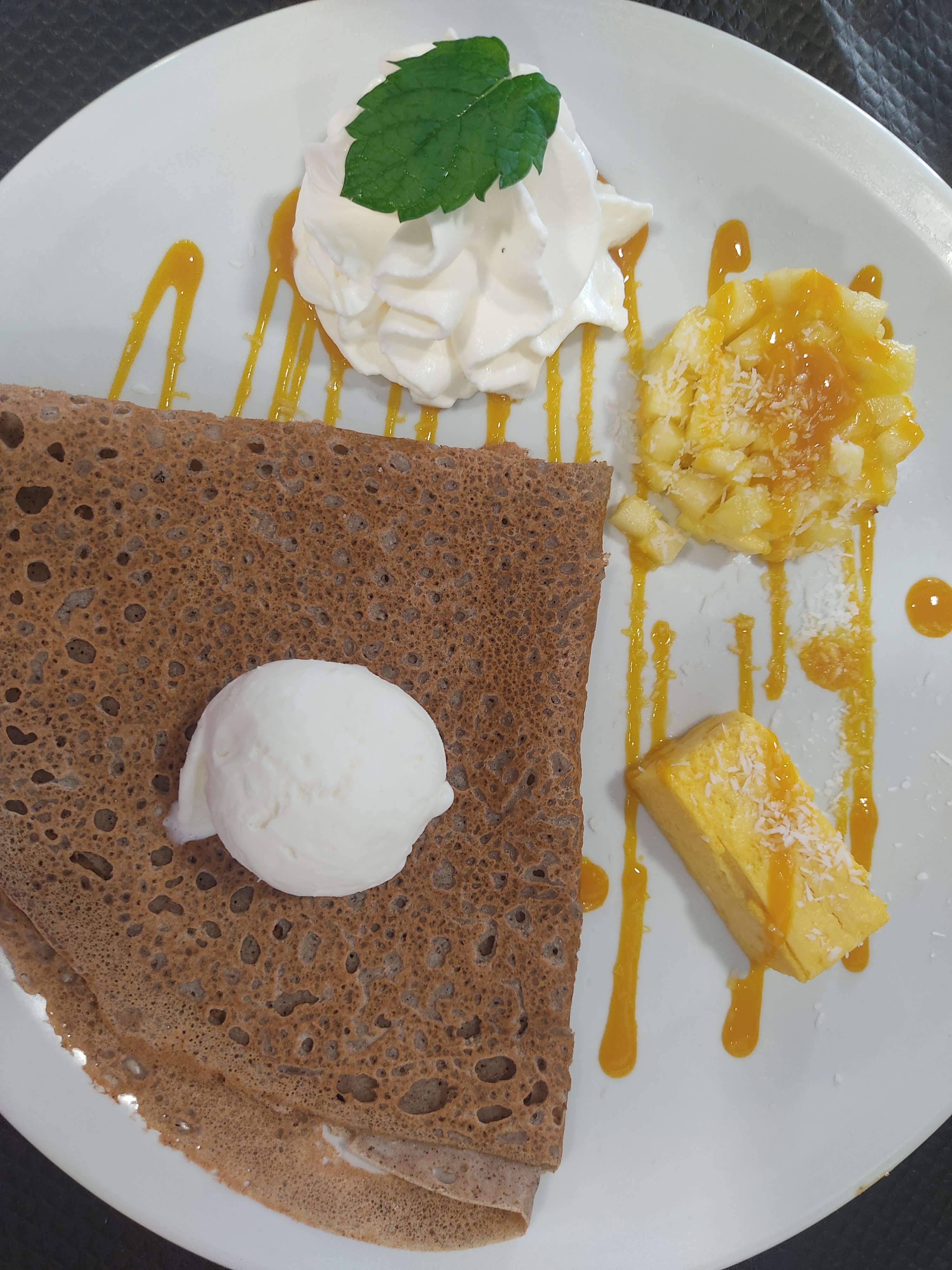 Très bon restaurant et crêperie. Produit frais, bien présenté. Il font de très bonnes crêpes que ça soit sucrée ou salée ainsi que de très bon plats avec surtout un plat spécialités reunionais qui existe aussi en crêpe excellent. Équipe souriante, dynamique au top. Restaurant cosy très confortable. Rapport qualité prix au top. Je recommande.