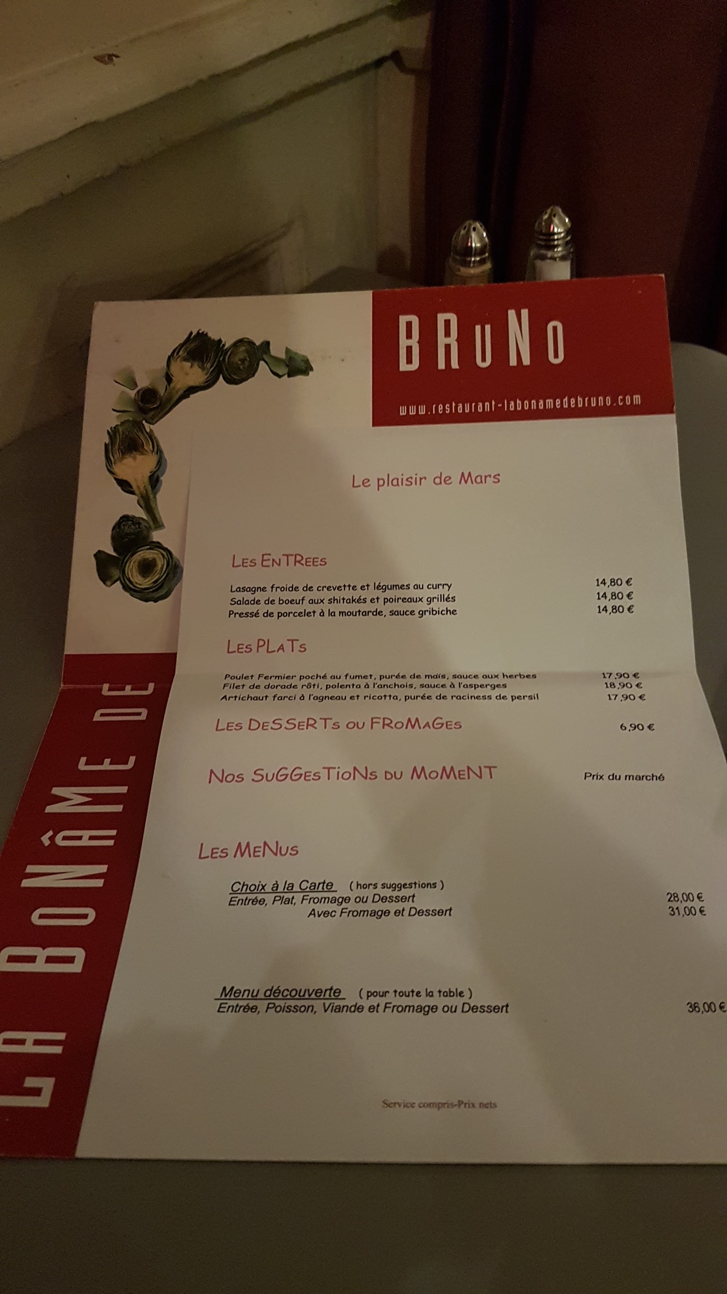 Une belle adresse que cette bonâme de Bruno. Un cuisine savoureuse de produits de saison, l’âme du chef se retrouve dans les assiettes, une carte courte mais qui complique le choix car on a envie de tout goûter. Un excellent moment, un service soigné et sympathique. Un restaurant comme on l’aime, simple et conviviale. Merci, nous reviendrons.