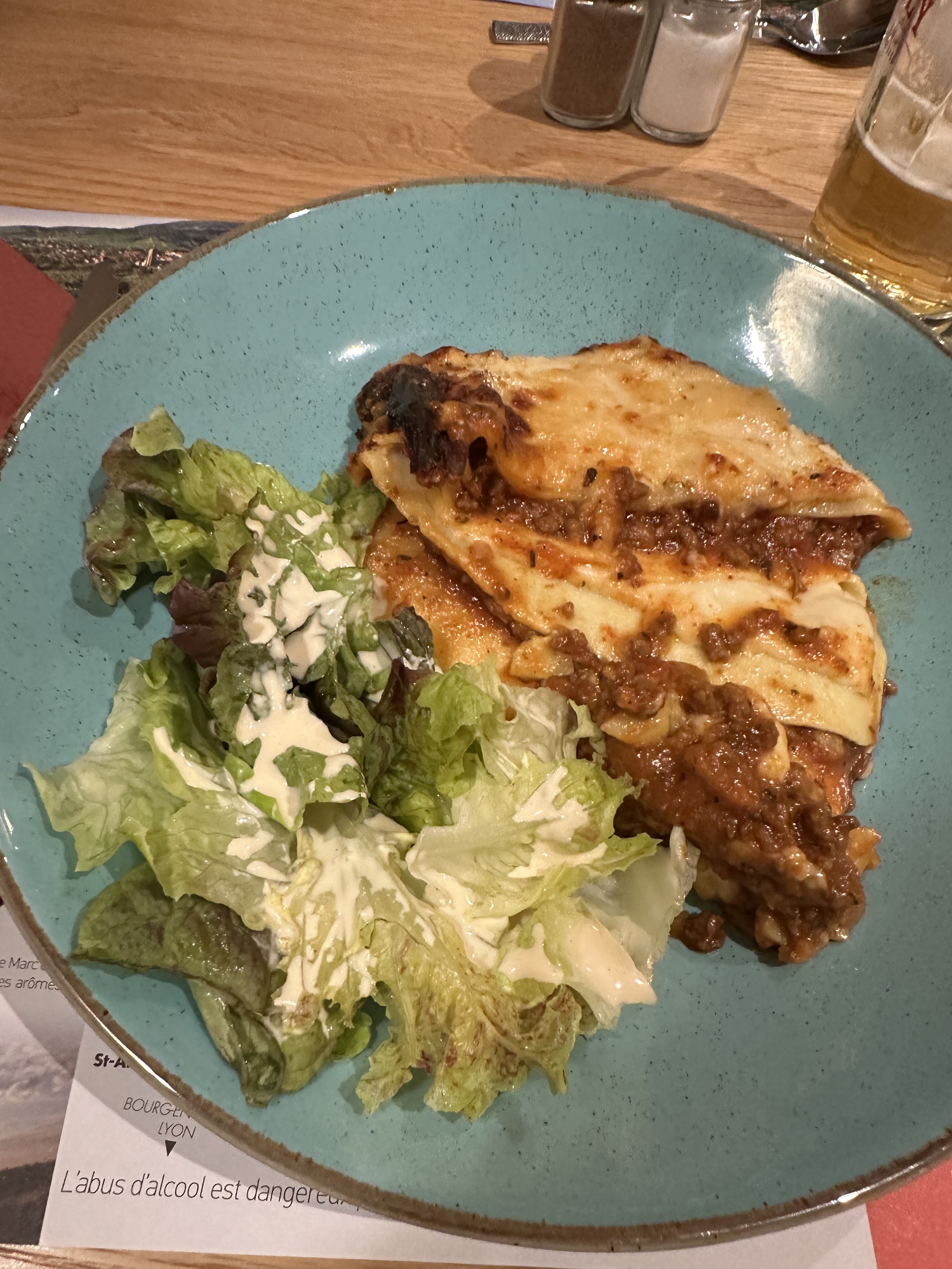 Bof. Repas du soir bien assez cher . Pâtes griller un peu sèche . morteau? A boire si c est de la vrai. Bruyant et en plus client fume dans le resto.