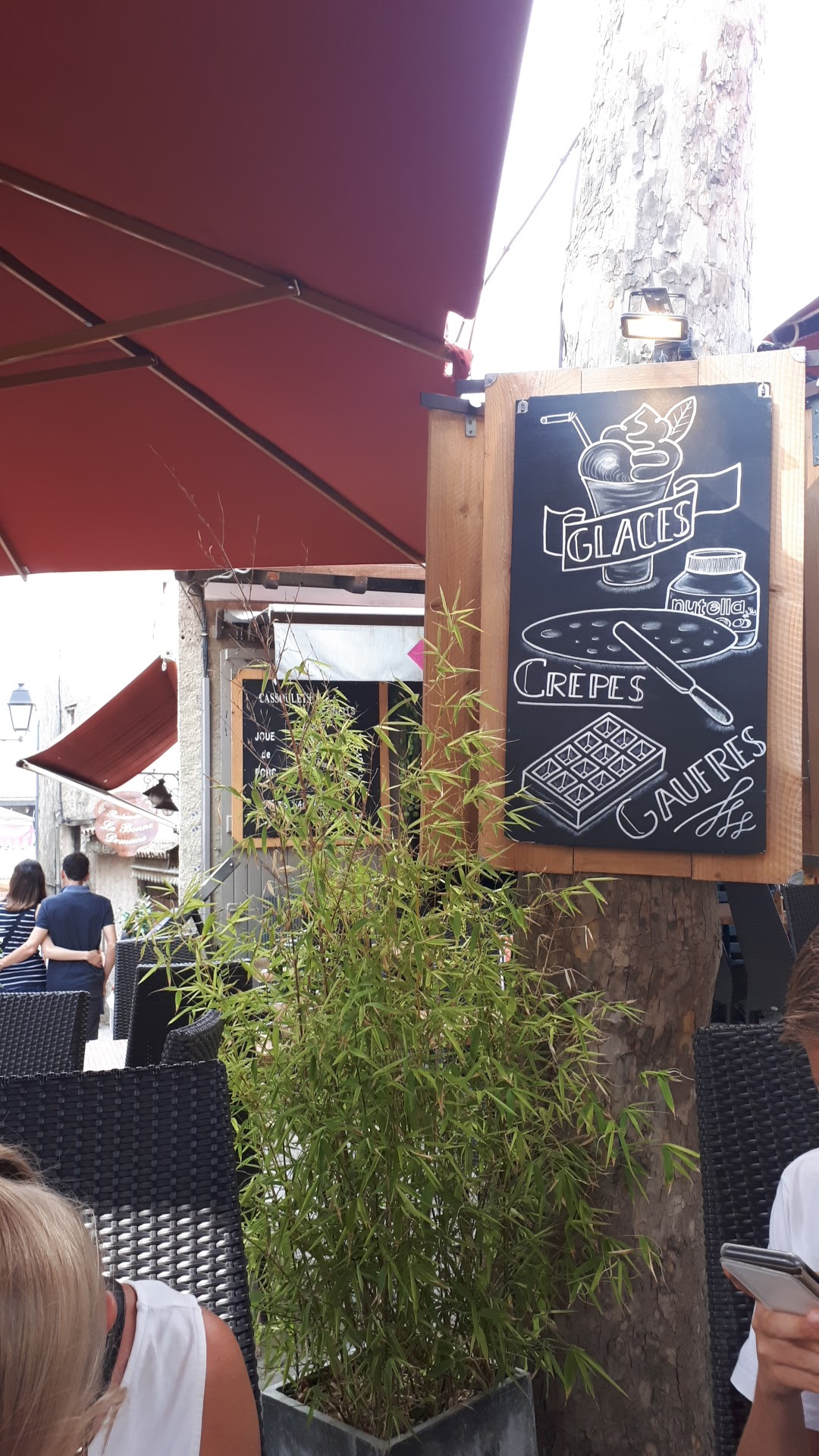 Ne prenez pas le verre de vin, Gratte palais... Sinon, serveur sympa et service rapide, sur un bel emplacement malgré les tables bancales, je n'y ai pas mangé...