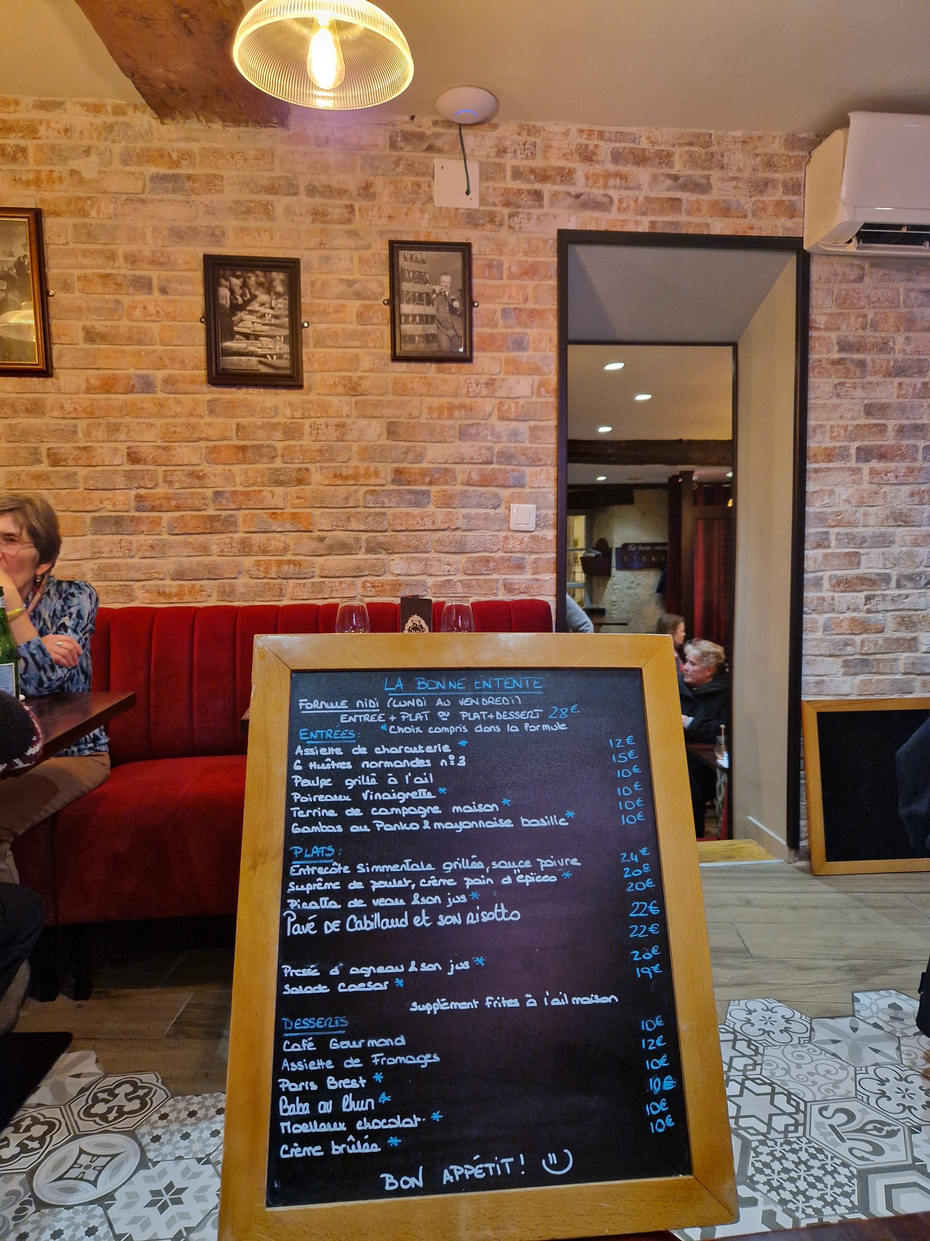 Vous aimez la Bonne cuisine Française avec la joie de vivre dans un cadre rétro. Alors c'est à la bonne Entente que vous devez aller Pour un peu plus de 40 € par personne avec apéritif une bonne bouteille de vin et une cuisine succulente, ne serai pas déçu. Nous on reviendra.