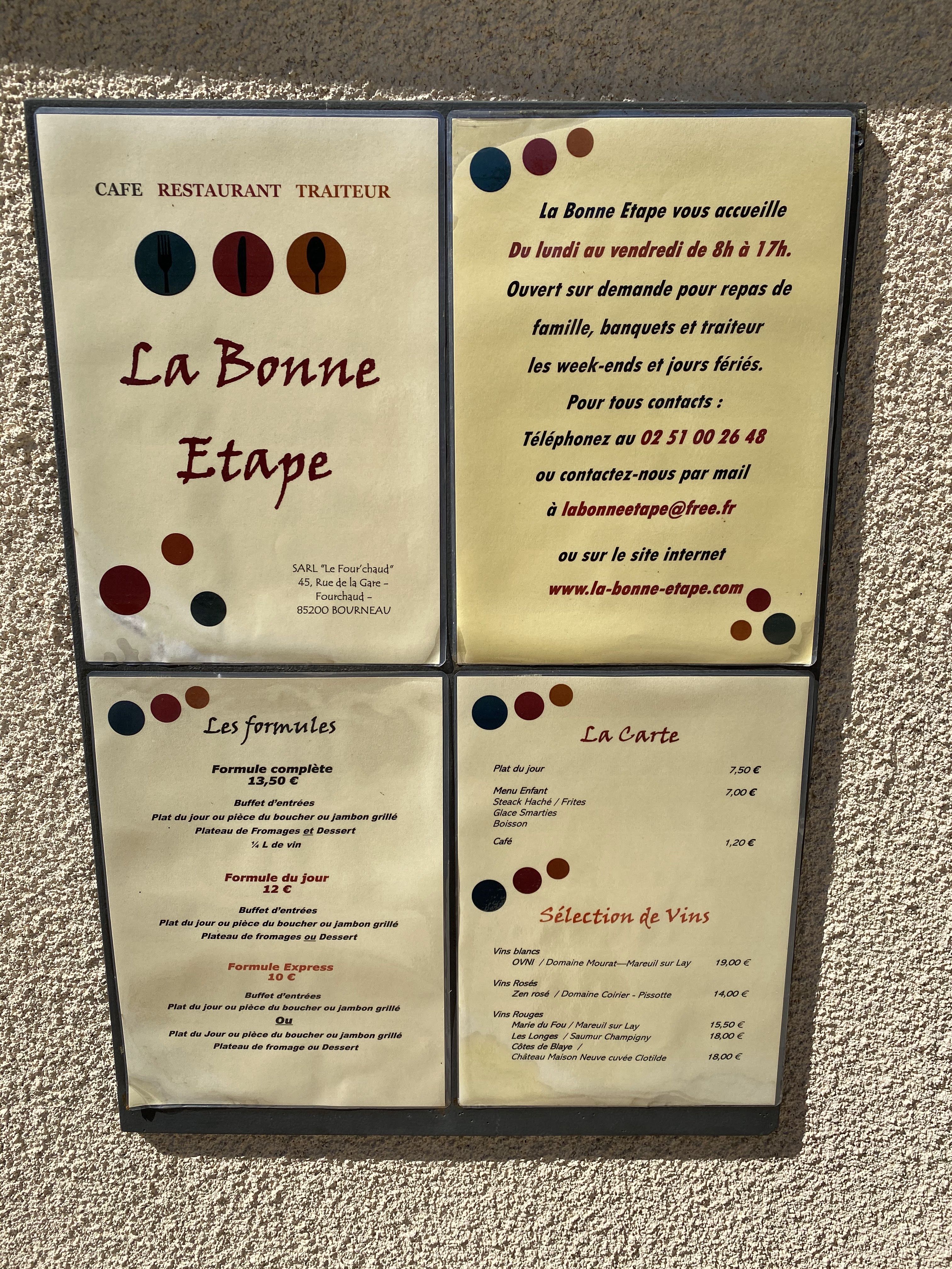 On y entre, on y trouve un bon menu limité, des toilettes propres et, pour le déjeuner, un bon rapport qualité-prix dans ce quartier touristique plutôt cher. Nous vivons maintenant dans le coin, il est possible de venir à pied et nous revisiterons certainement ce petit bijou. La rose de Pissotte était particulièrement bonne. Walk in, great limited menu, clean loos and for lunch great value in this rather otherwise expensive tourist area. We now live locally, it's possible walk here and will certainly revisit this little gem. The rose from Pissotte was particularly good.